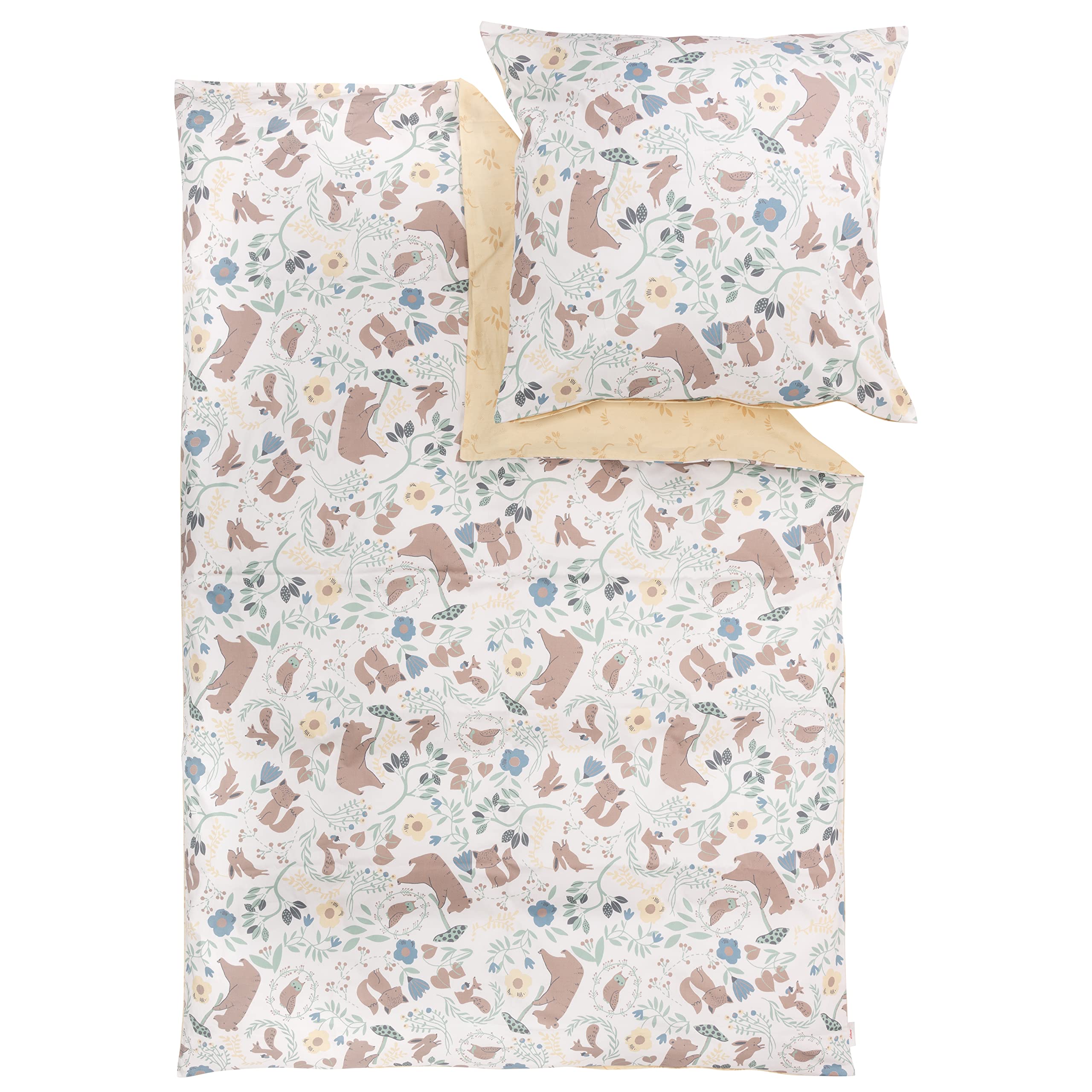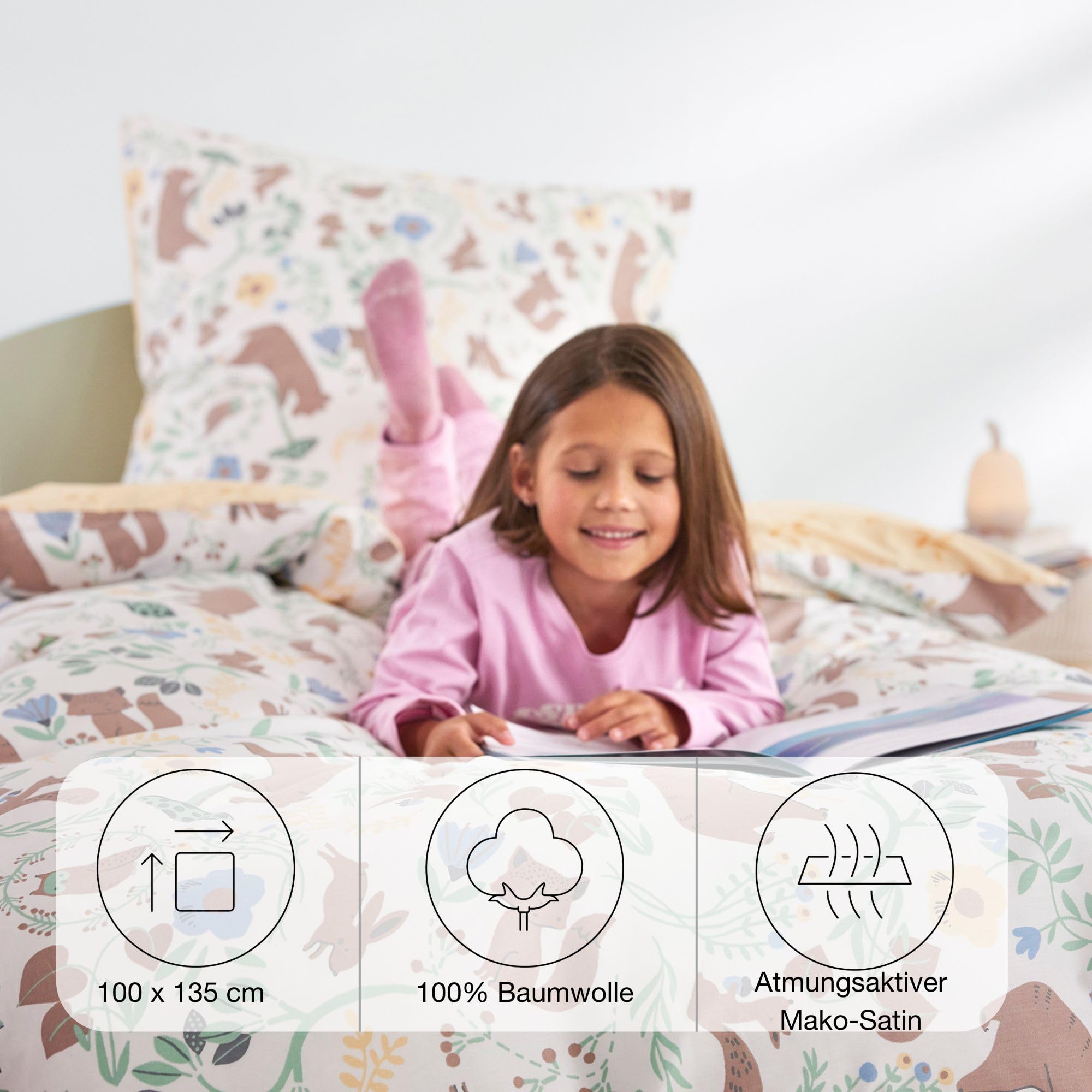s.Oliver Kinderbettwäsche Waldtiere 100x135 cm - 100% Baumwolle, praktischer Reissverschluss & maschinenwaschbar, Bettwäsche für Kinder 2tlg. Tiere gelb bunt