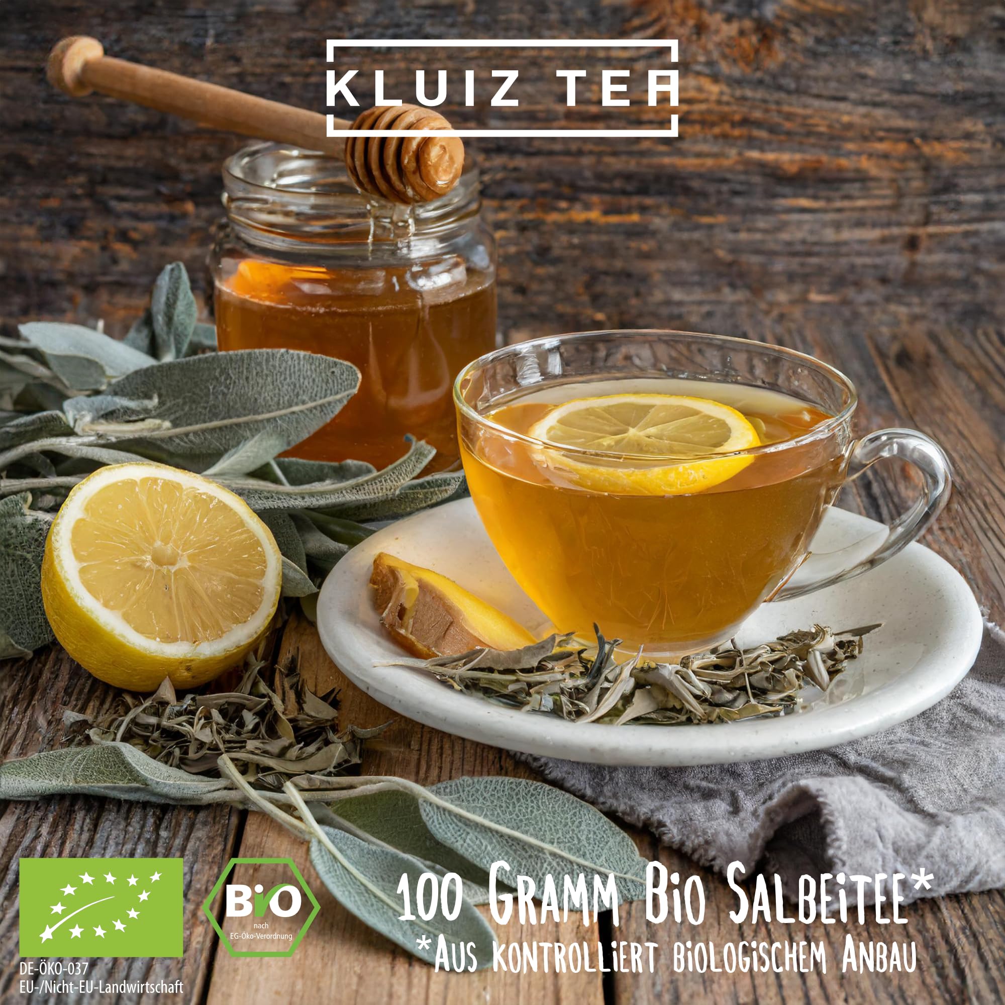 "Bio Salbei Tee - Würzige Frische und Natürlichkeit in jeder Tasse Erleben Sie die hocharomatischen getrockneten Blätter des Bio Salbei Tees, deren würzig-herber Duft und Geschmack ein einzigartiges Teeerlebnis versprechen. Perfekte Zubereitung: Die Zubereitung dieses Tees erfolgt klassisch als Heissaufguss. Verwenden Sie einen gehäuften Teelöffel Salbeitee auf 250 ml sprudelnd kochendem Wasser bei 100 Grad. So entfalten sich die vollen Aromen für einen intensiven Genuss. Harmonische Geschmackskomposition: Kreieren Sie eine tolle Geschmackskomposition, indem Sie dem Tee etwas Honig und Zitrone hinzufügen. Diese Zugabe verleiht dem Tee eine zusätzliche Tiefe und einen ausgewogenen Geschmack. Wohltuende Vielseitigkeit: Der Bio Salbei Tee überzeugt nicht nur geschmacklich, sondern wird auch für seine wohltuenden Eigenschaften geschätzt. Geniessen Sie Momente der Entspannung und Unterstützung für Hals und Atemwege. Natürliche Frische und Reinheit: Verzichten Sie auf künstliche Zusätze und erleben Sie die natürliche Frische des Bio Salbei Tees. Die Blätter stammen aus kontrolliert biologischem Anbau und stehen für höchste Qualität und Reinheit. Bio-Qualität für bewussten Genuss: Unser Salbei Tee entspricht den höchsten Bio-Standards und wird umweltfreundlich verpackt. Geniessen Sie bewusst und mit gutem Gewissen. Entdecken Sie die belebende Kraft des Bio Salbei Tees: Tauchen Sie ein in die Welt würziger Frische und natürlicher Vielfalt. Bestellen Sie den Bio Salbei Tee jetzt und erleben Sie puren Genuss in Ihrer Teetasse."