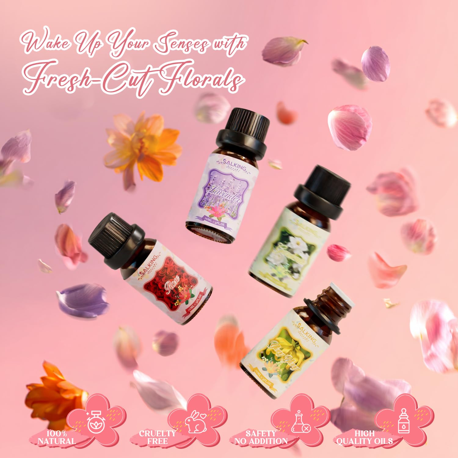 SALKING Blumen Ätherische Öle Set, Aromatherapie Duftöl GeschenkSet, Pure Duftöle für Diffuser Luftbefeuchter, 6x10 ml (Lavendel, Kirschblüte, Gardenie, Rose, Ylang-Ylang, Kamille)