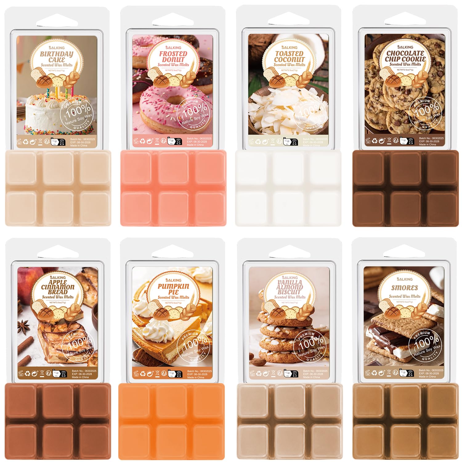 SALKING Backen Duftwachs für Duftlampe - Duftwachswürfel Raumduft Wax Melts 100% Sojawachs Kerzenwachs Duft Duftkerze Geschenk Set für Halloween, Weihnachten 8 Düfte