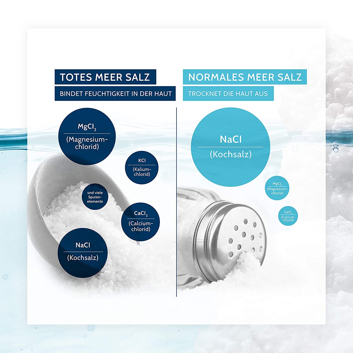 • ???? EINZIGARTIGE MINERALKOMBINATION: Das naturreine, kristalline Badesalz mit seiner einzigartigen Mineralienkombination aus Kalzium, Magnesium, Kalium und Brom besitzt hautberuhigende sowie feuchtigkeitsspendende Eigenschaften.