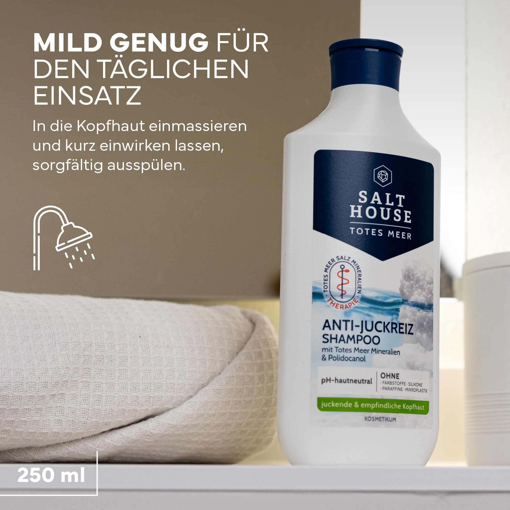 Salthouse Totes Meer Therapie Anti-Juckreiz Shampoo, beruhigende Formel mit Urea & Panthenol, für empfindliche Kopfhaut, 250ml