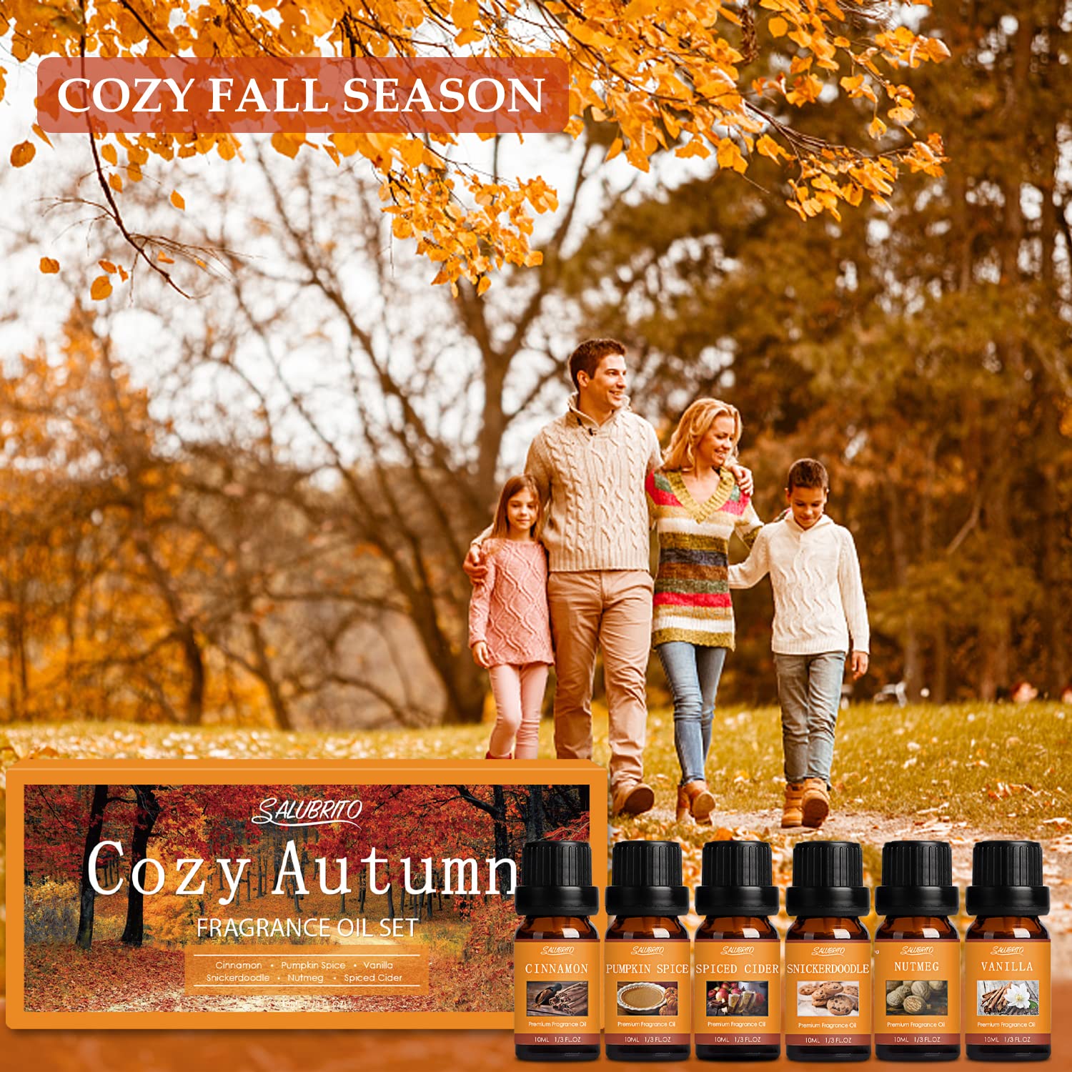 • ???? SALUBRITO Herbst Ätherische Öle Set wurden von unserem Meisterparfümeur formuliert, um das wahrgenommene Aroma des Herbstgeruchs genau nachzubilden. Dieses Herbst-Duftöl wird für die Verwendung im Haus und im Auto empfohlen oder in Kerzen, Seifen und Bädern verdünnt. Dieses Set mit ätherischen Ölen ist nur für die äusserliche Anwendung und den Gebrauch von Raumdüften bestimmt. Nicht in Lippenbalsam/Pflegeformulierungen verwenden. Von Kindern und Haustieren fernhalten.