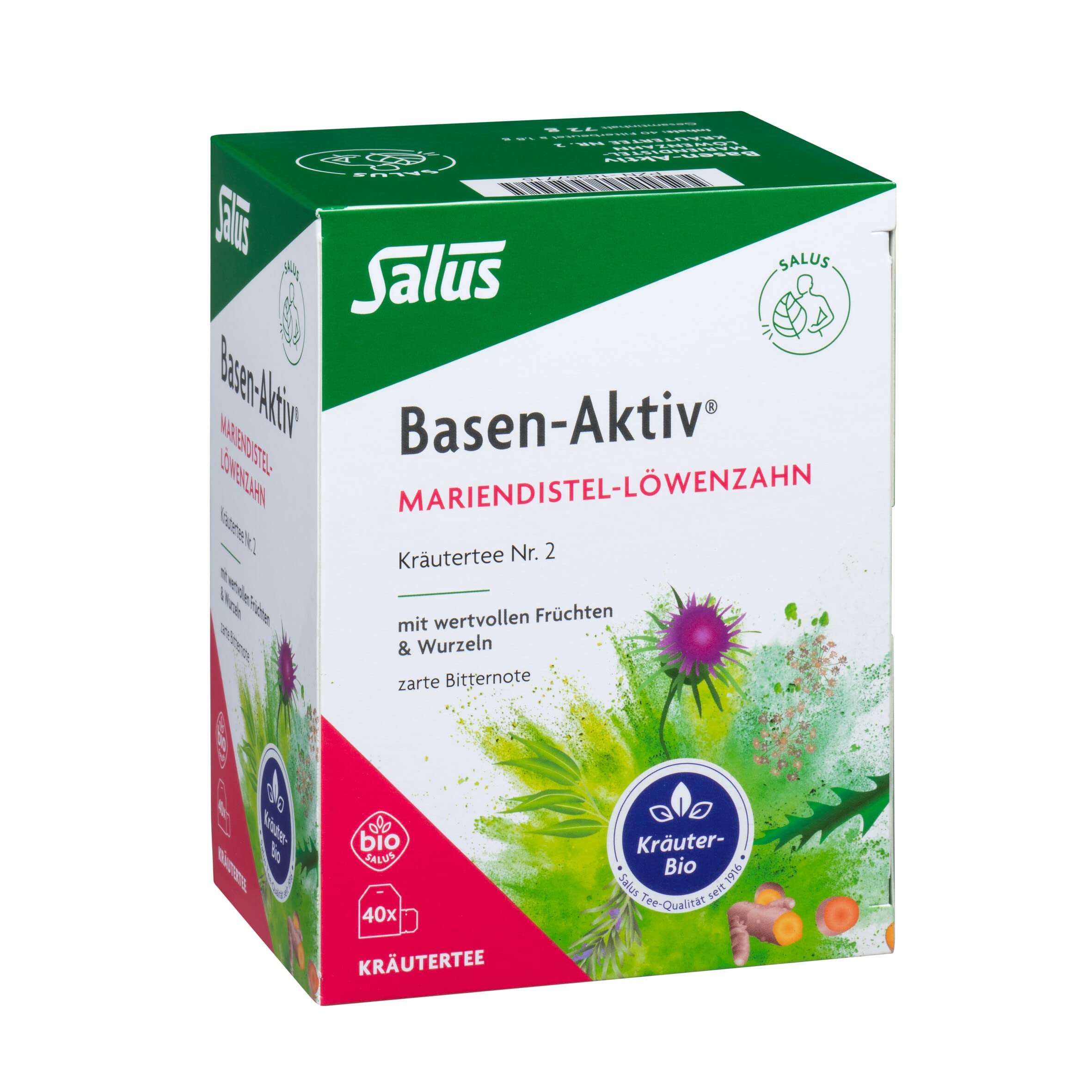 Salus Basen-Aktiv Mariendistel Löwenzahn Tee - 1x 40 Stück (72 g) - Kräutertee Nr. 2 - Salus Tee Qualität seit 1916 - mit wertvollen Früchten und Wurzeln – zarte Bitternote - bio