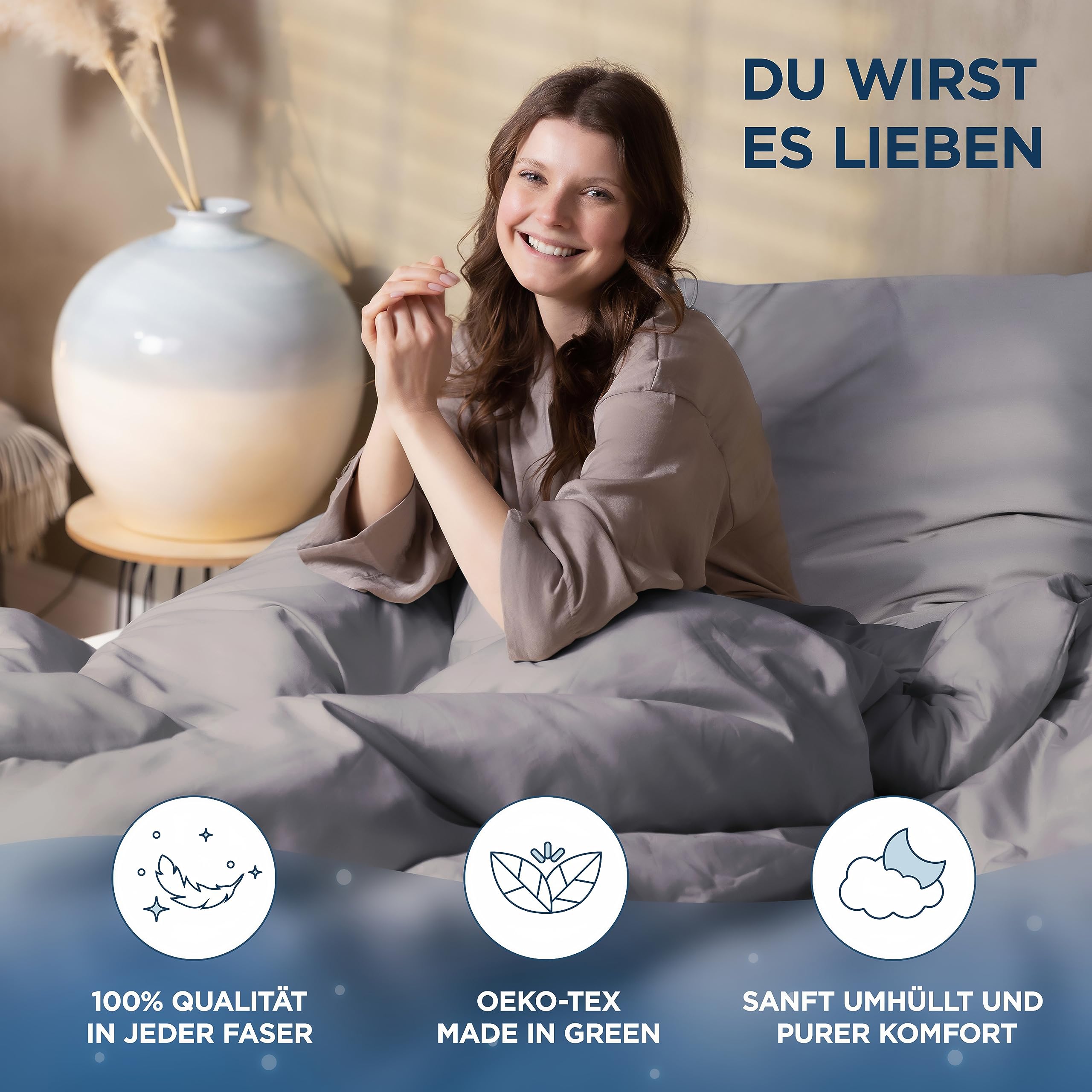 Samthus Bettwäsche Baumwolle Mako Satin - Oeko-Tex Made In Green - himmlisch weicher Schlaf - Atmungsaktiv - Bettwäsche-Set Duvet Cover