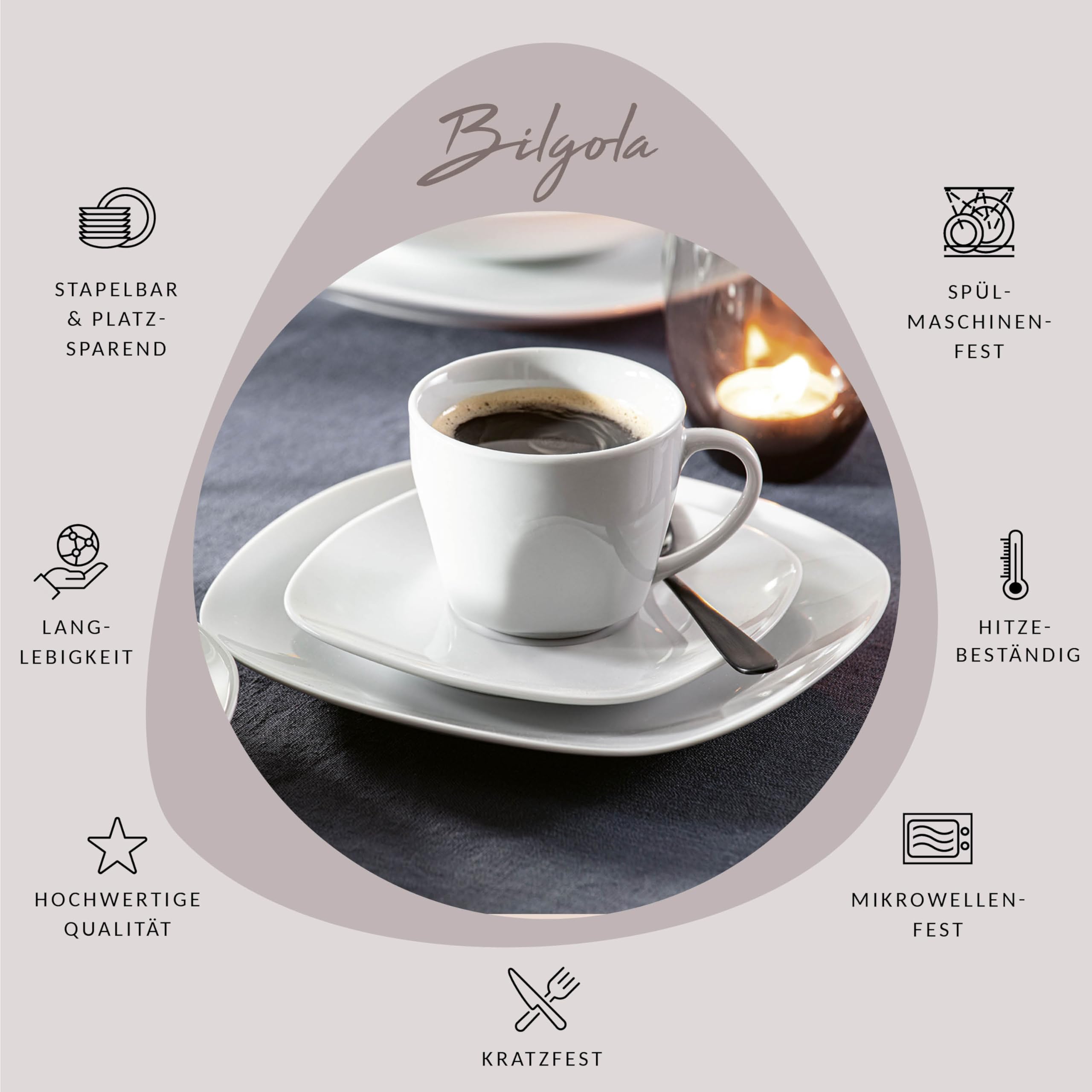 BESTSELLER QUALITÄT DIE ÜBERZEUGTDas ist das Highlight dieses Kaffeetassen Sets. Die Runde, leicht eckige Form ist universell einsetzbar und fügt sich hervorragend in unsere 'Bilgola' Geschirrset Serie ein. Ein echtes Design-Objekt zu einem absolut Fairen Preis
