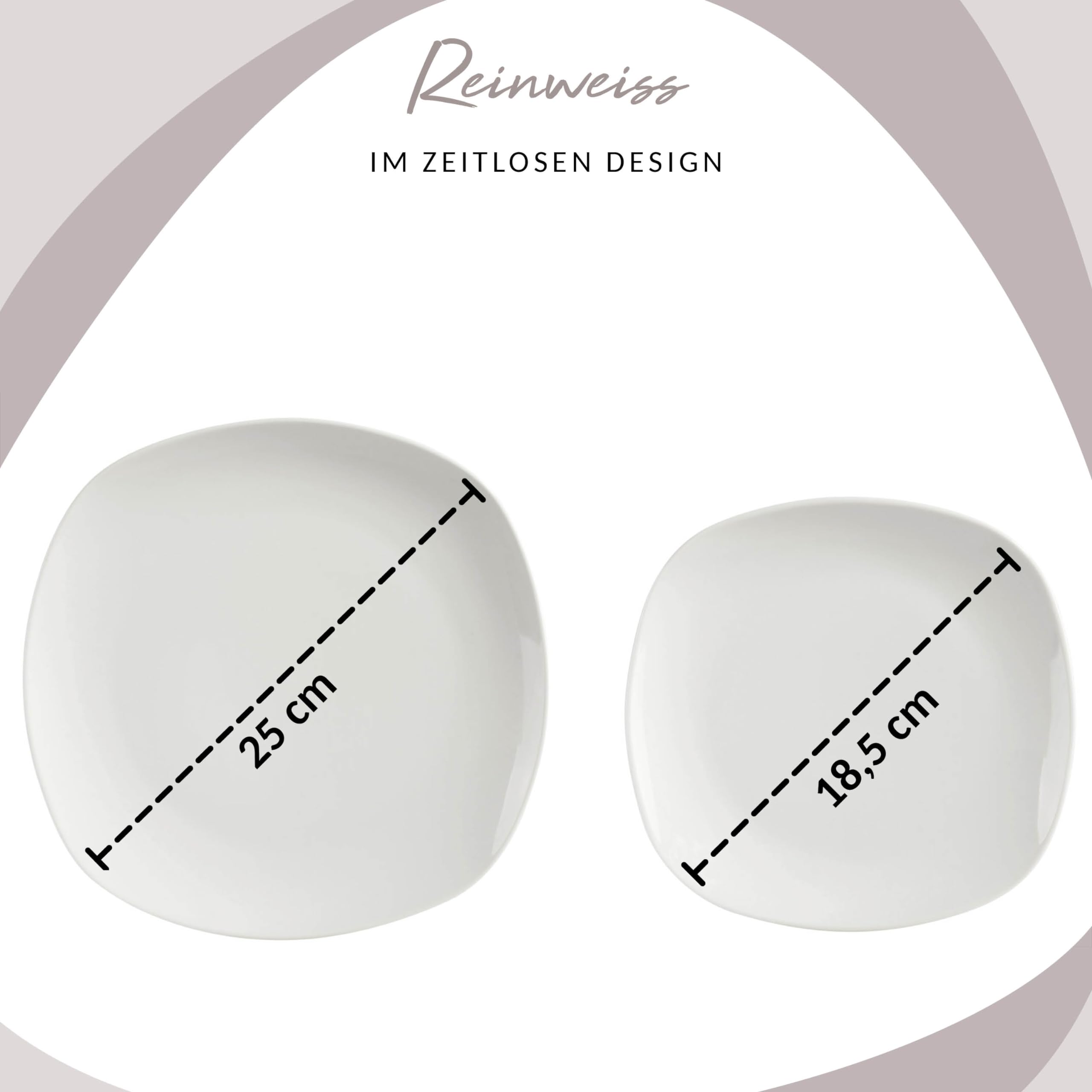SÄNGER | Kombiservice Bilgola in weiss, 16-teiliges Geschirrset aus Porzellan für 4 Personen, Teller, Tassen, Schalen, Eckiges Design | PREMIUM COLLECTION