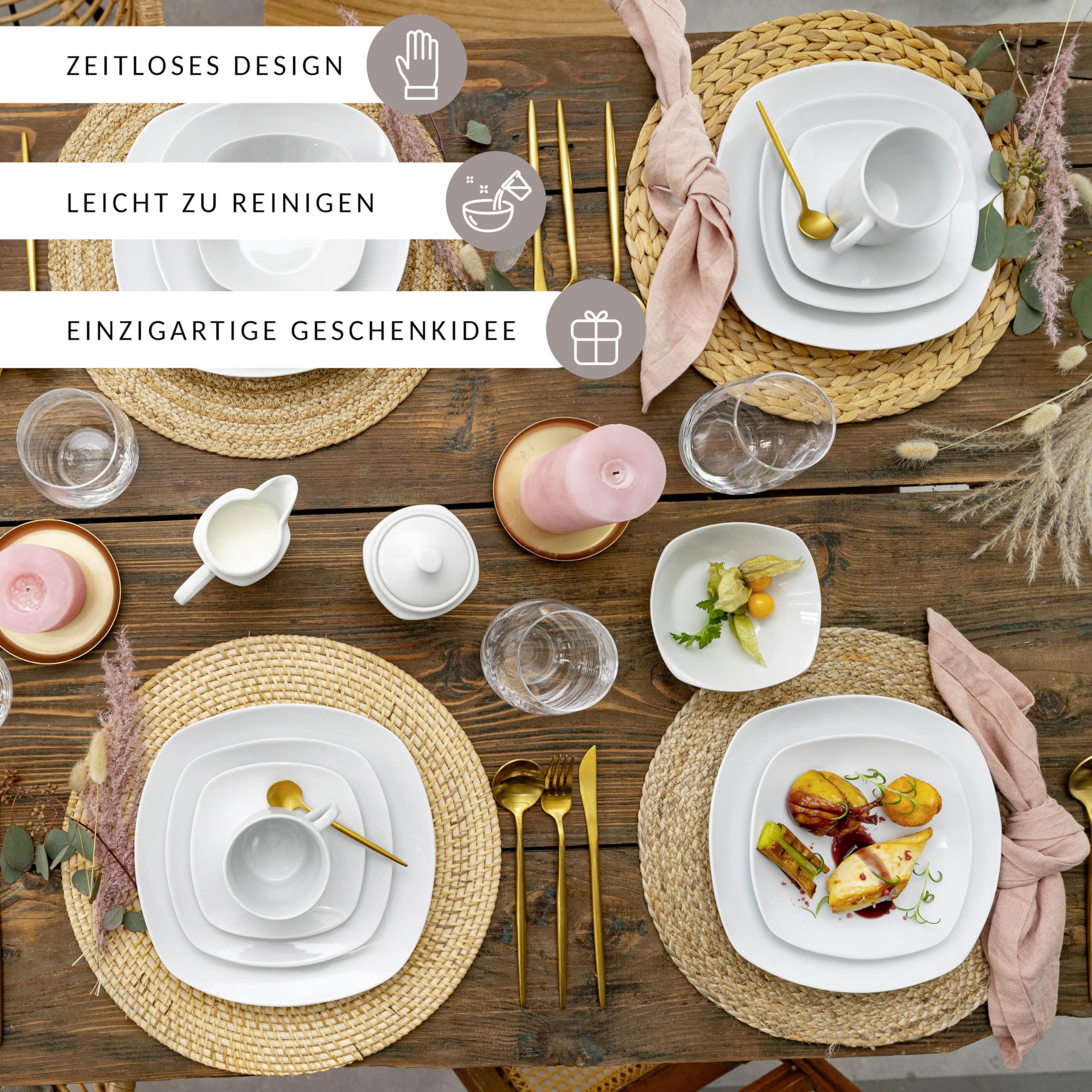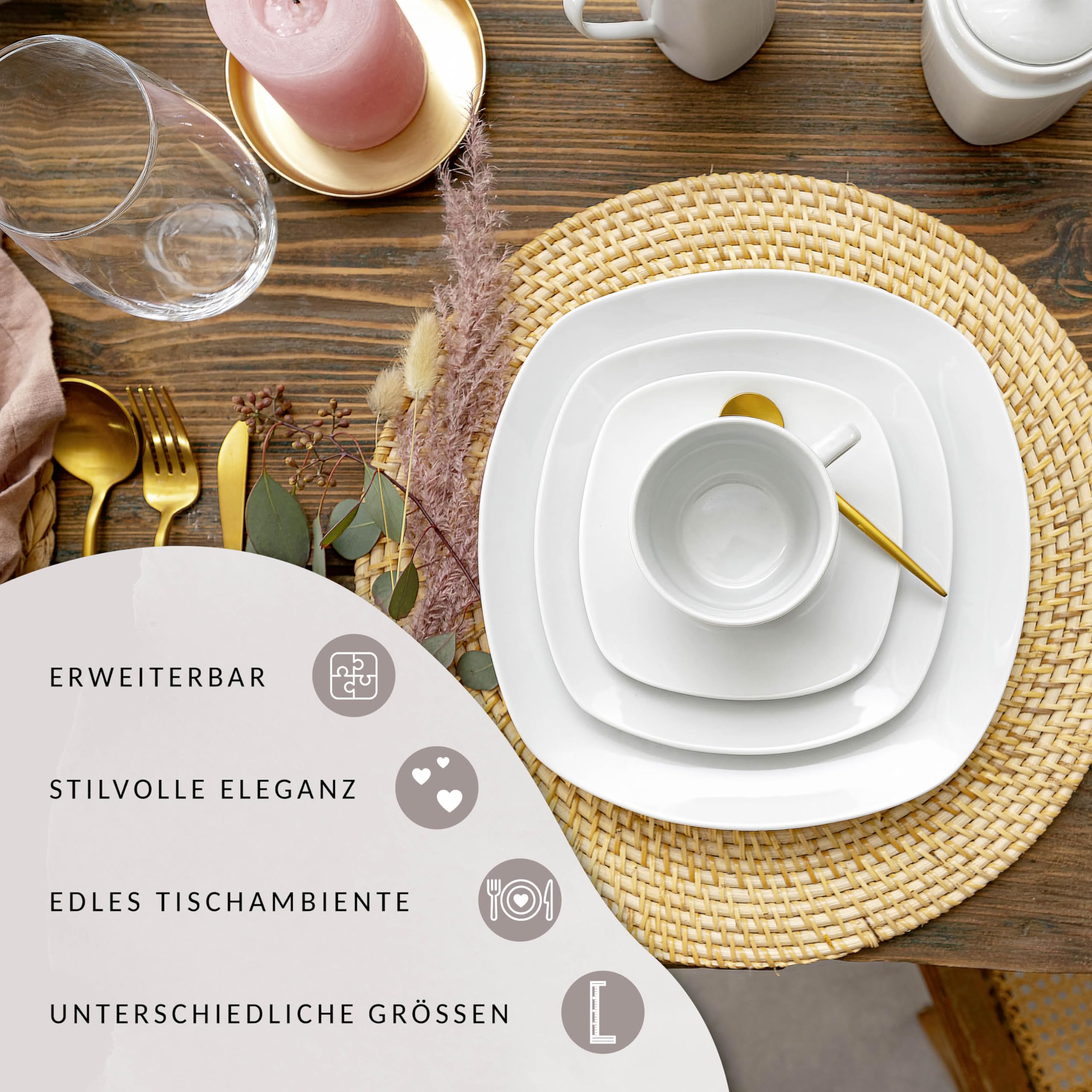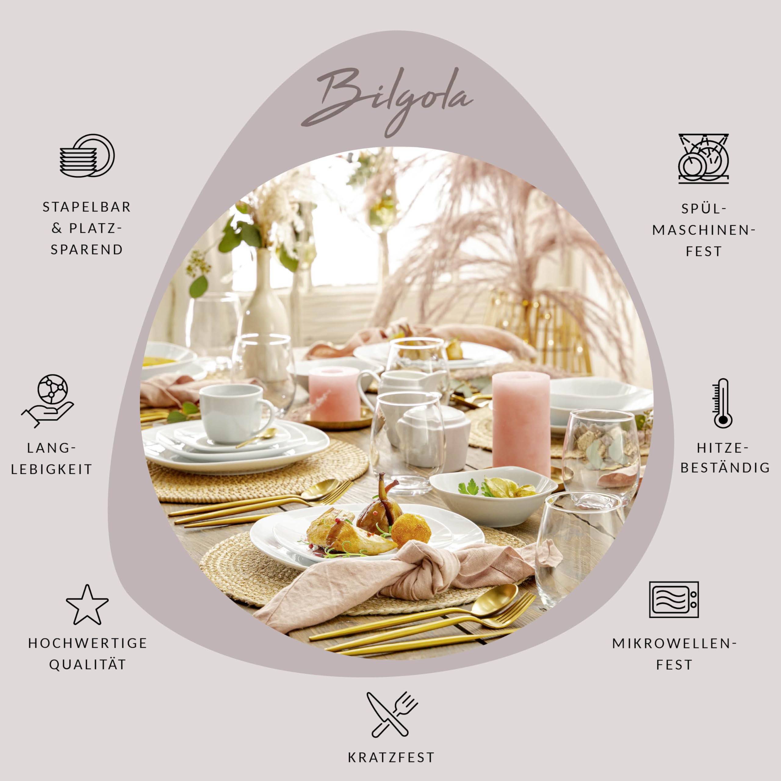 BESTSELLER QUALITÄT: Das ist das Highlight dieses Geschirrservices. Die runde, leicht eckige Form ist universell einsetzbar und beinhaltet alle Bestandteile unserer Set-Serie 'Bilgola'. Ein echter Hingucker zum fairen Preis