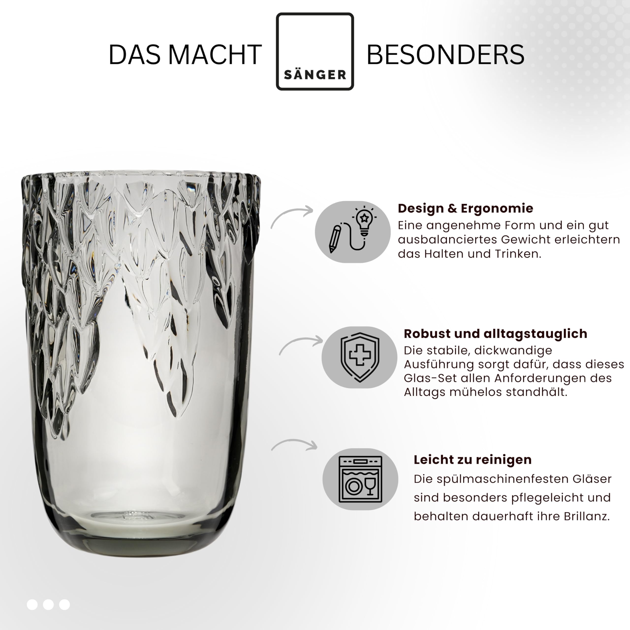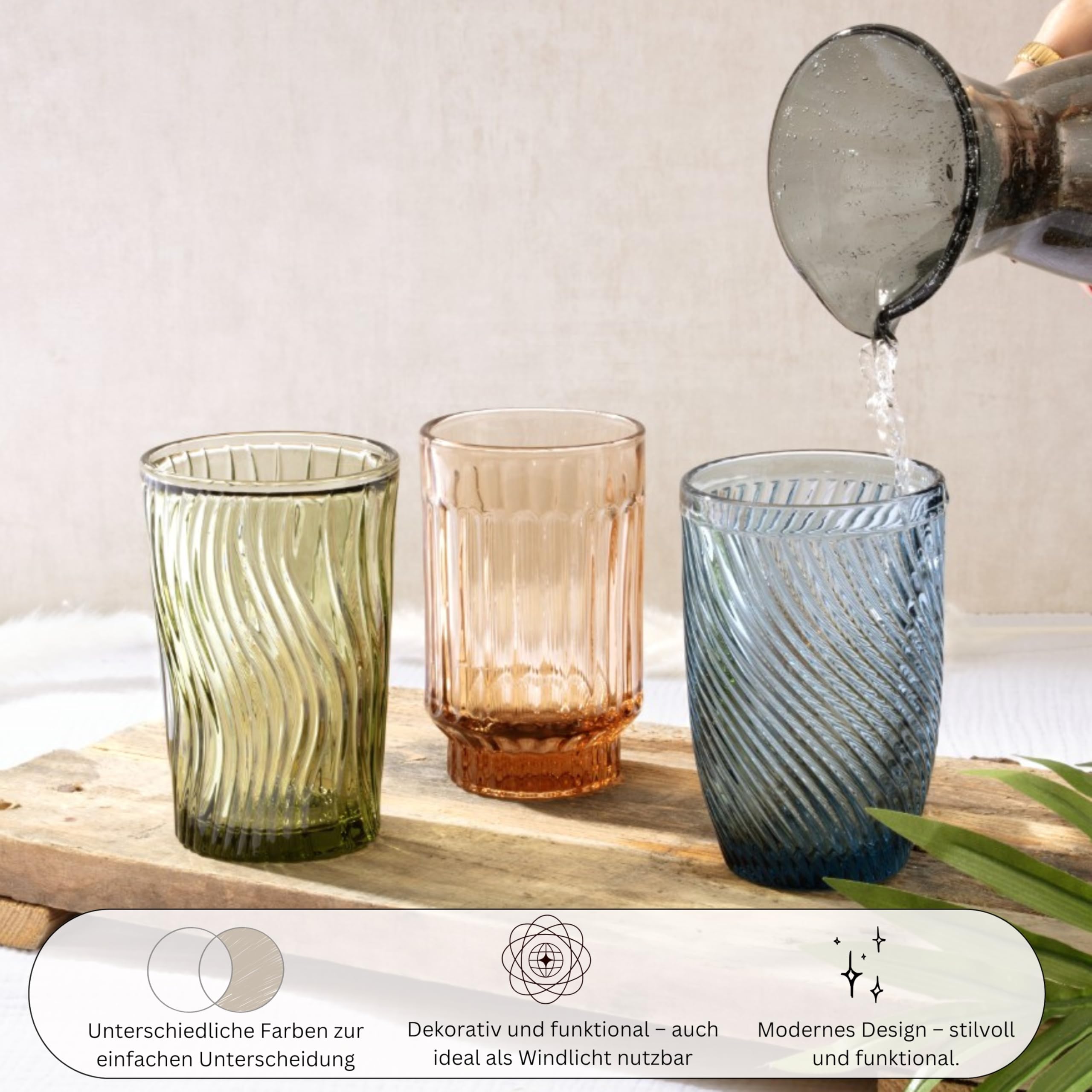 Sänger Trinkgläser Set Faro 6 teiliges Gläser Set für 6 Personen aus Glas, Wasserglas, Mehrfarbig, einzigartiger Schliff, Alltag, Familienessen, Büro, Outdoor Saftgläser Set | 330 ml