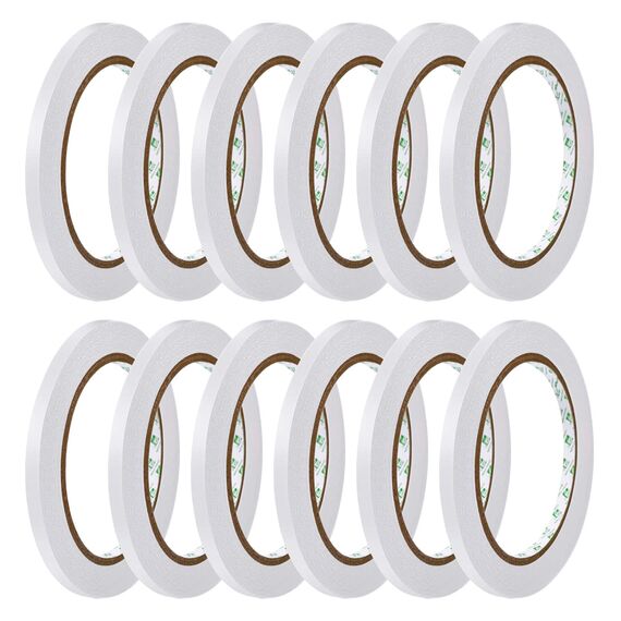 Starke Klebekraft - kann leicht von der Rolle und dem Schutzstreifen entfernt werden. Technische Daten: Länge: 10 Meter pro Rolle Breite: 9mm / 6mm / 12mm. Farbe: transparent Package include: Doppelseitiges Klebeband (8 Rollen / 12Rollen / 6Rollen).