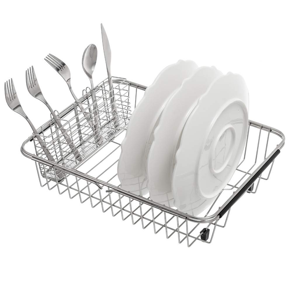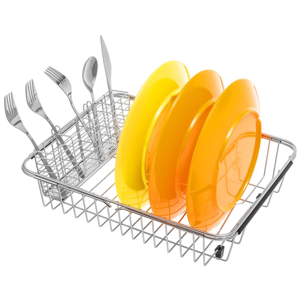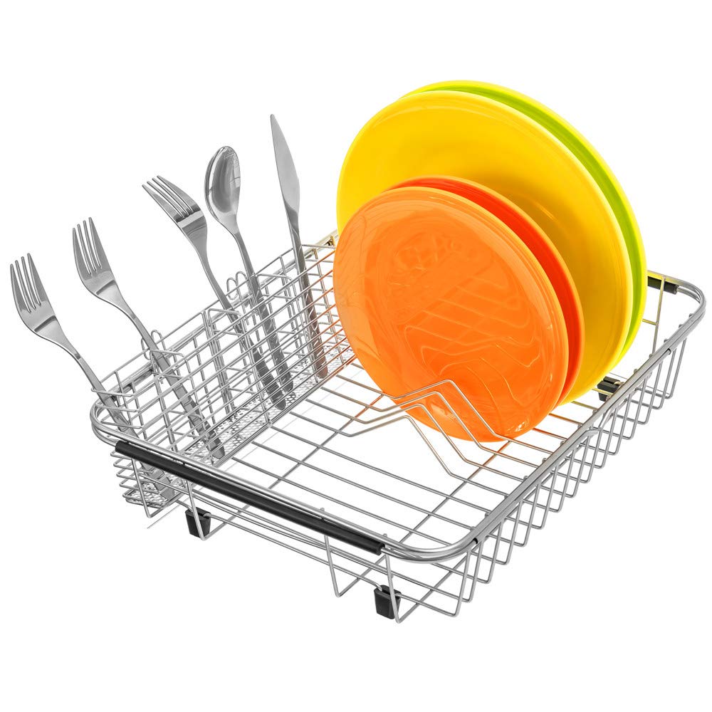 SANNO Utensilienhalter zum Aufhängen, Besteck-Organizer, Löffel, Abtropfgestell, Korbhalter, 4 unterteilte Fächer, Besteck-Organizer, Edelstahl