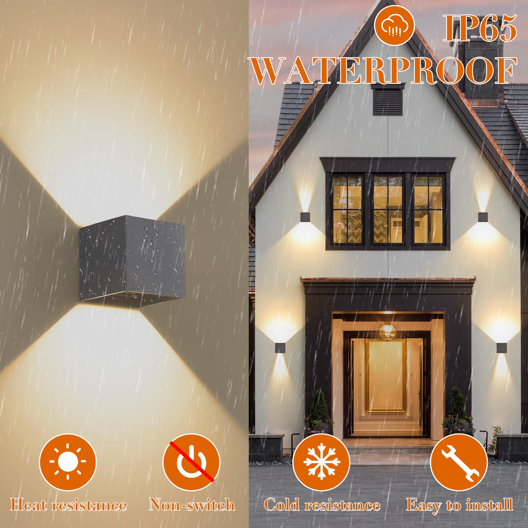 SANSHI 2 Stücke LED Wandleuchte Innen/Aussen,12W Aussen Lampe,IP65 Wasserdichte Wandlampe,3000K Warmweiss Aussenlampe,Modern Aussenleuchte,Garten Aussenleuchte mit Up Down Einstellbar Abstrahlwinkel,Dunkelgrau