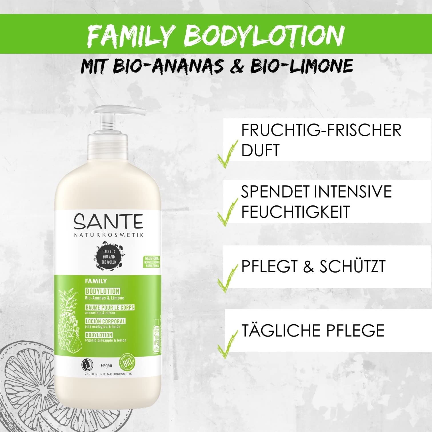 SANTE Naturkosmetik Feuchtigkeitsspendende Körperpflege gegen trockene Haut, Körpercreme für geschmeidige Haut, Mit Bio-Ananas und Limone in Vorteilsgrösse, Family Bodylotion , 1 x 500 ml