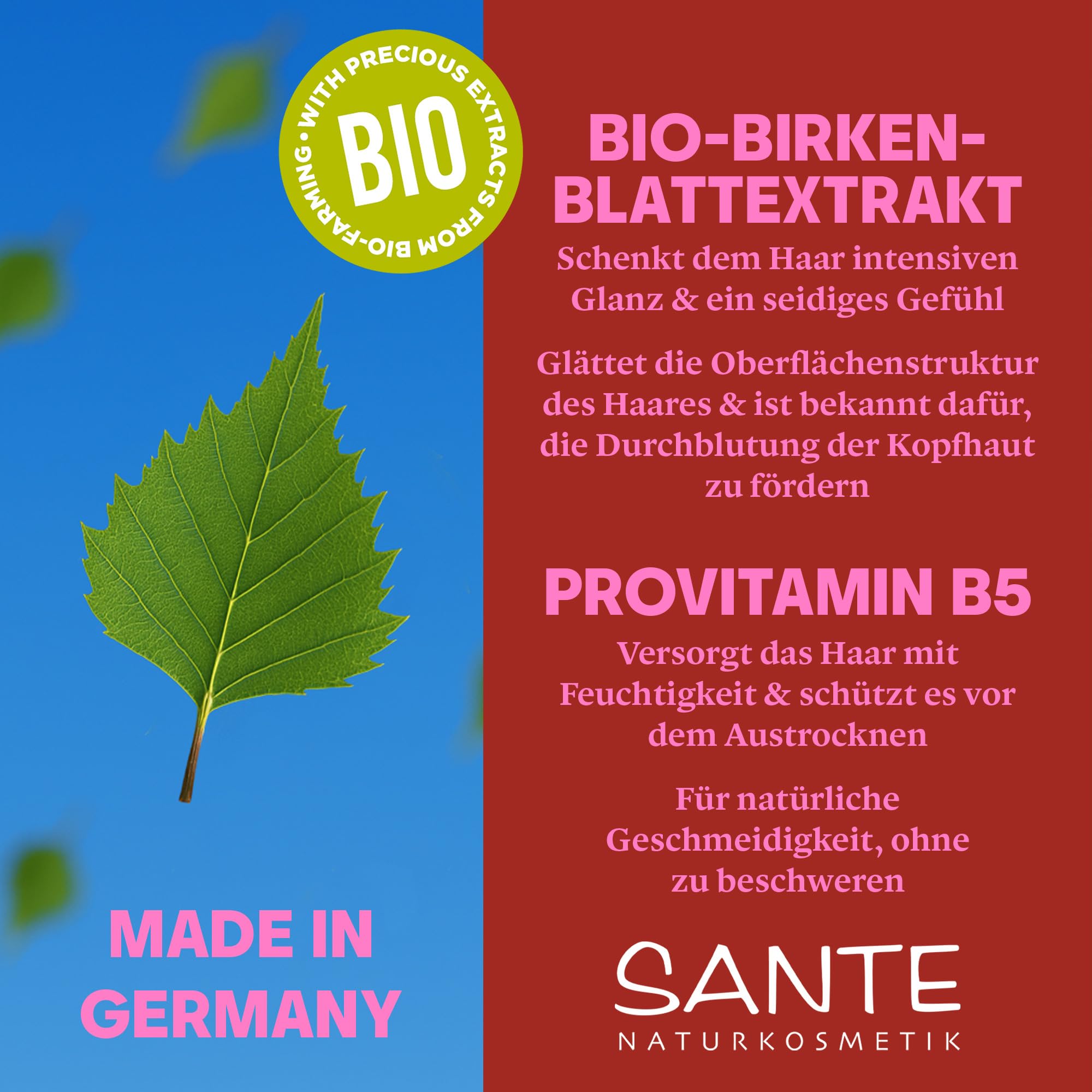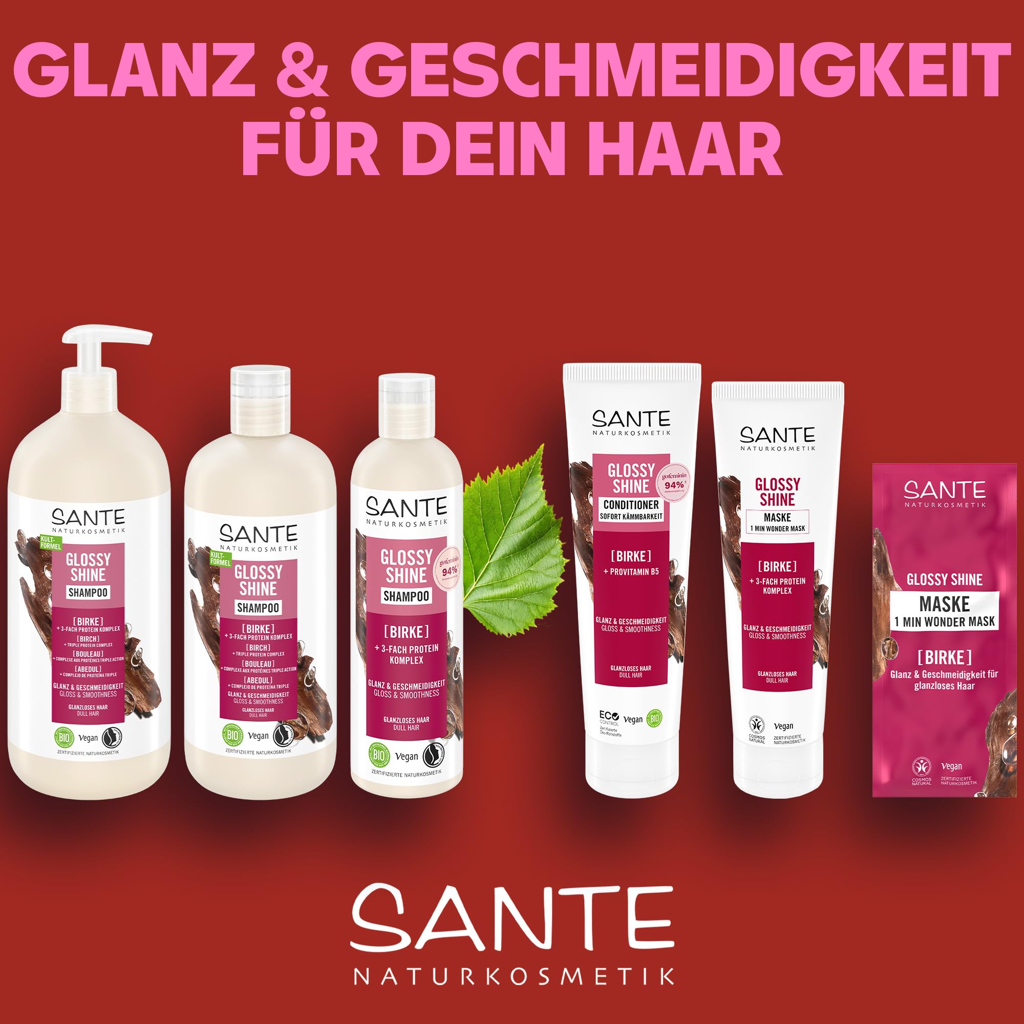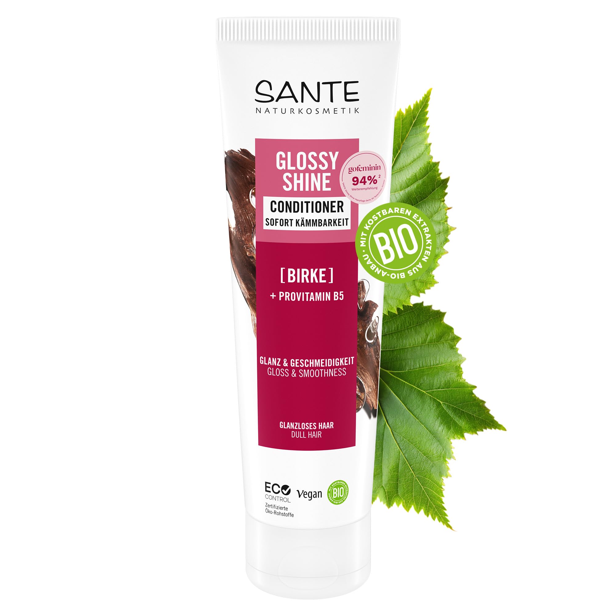 SANTE Naturkosmetik Glossy Shine Conditioner - 150 ml - mit Bio-Birkenblatt & Provitamin B5 - für glanzloses Haar - silikonfrei & vegan - dermatologisch getestet