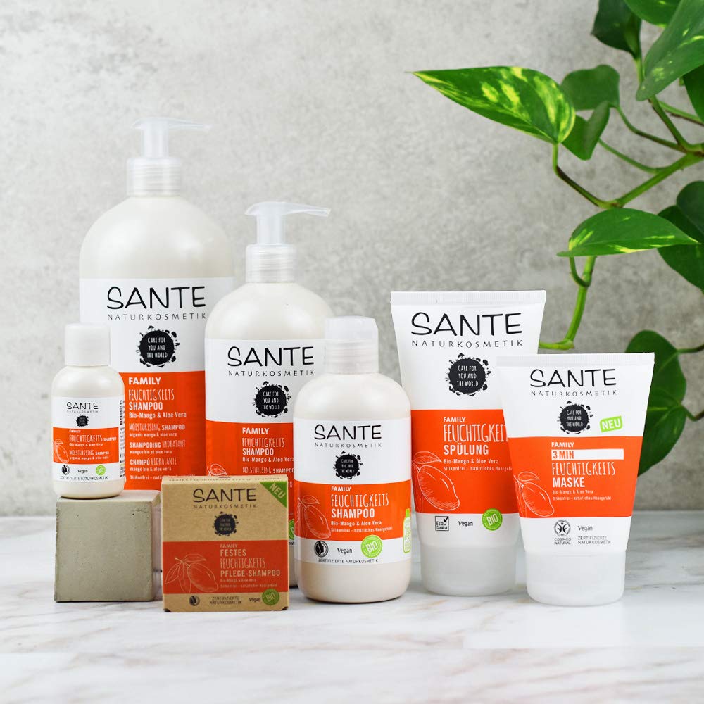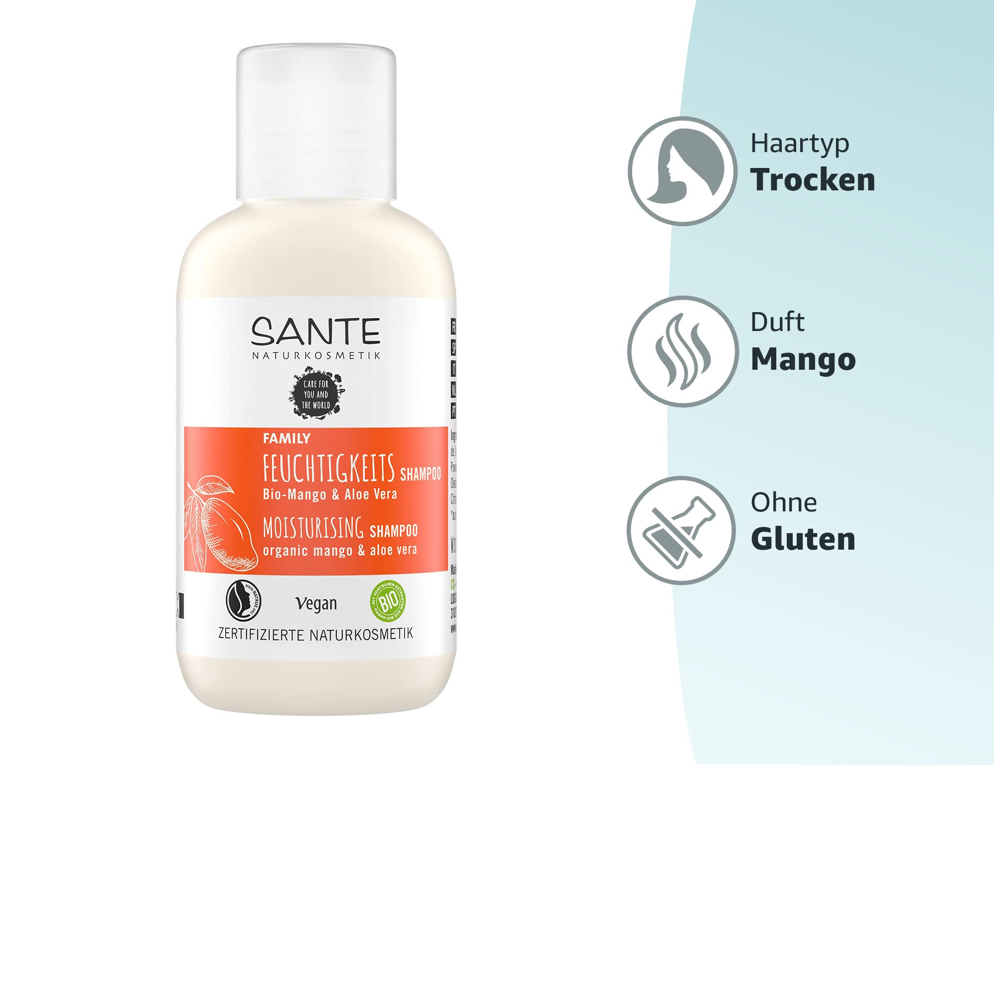 Sante Naturkosmetik Kleingrösse Feuchtigkeits Shampoo Bio-Mango & Aloe Vera, Spendet Feuchtigkeit, Glänzendes Haar, Natürliche Haarpflege für trockenes Haar, Vegan, 50ml