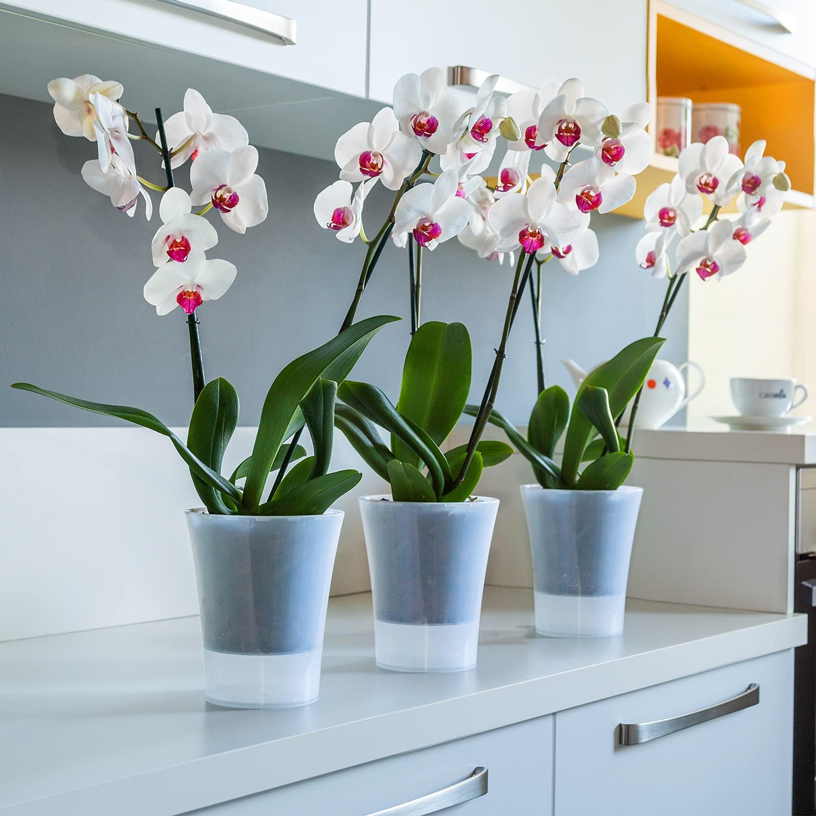 Santino 2er-Set Orchideentopf transparent mit selbstbewässerndem Dochtsystem - D 15 cm - Transparent - 2 L
