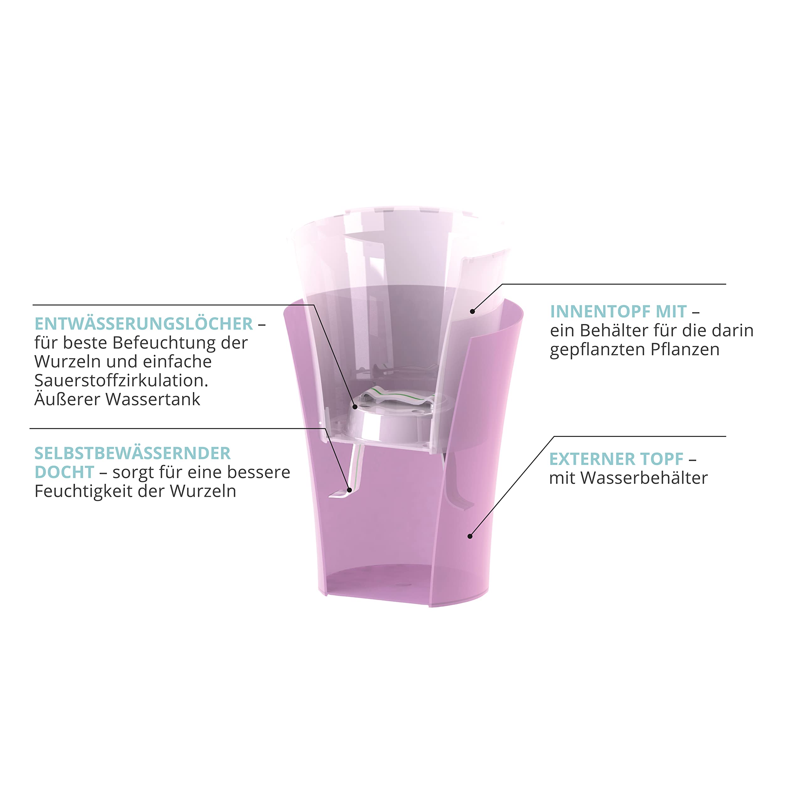 Santino 6er-Set Orchideentopf transparent mit selbstbewässerndem Dochtsystem - D 15 cm - Transparent - 2 L