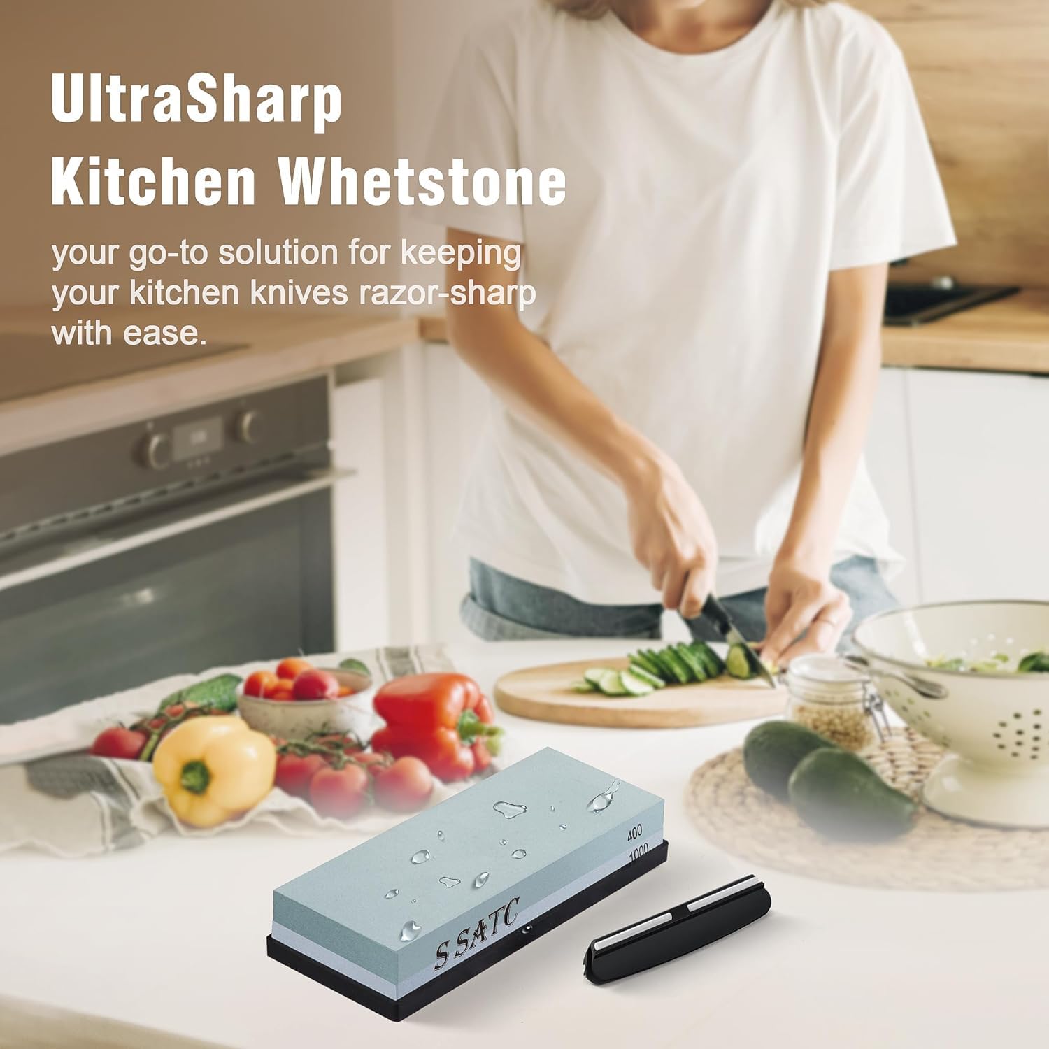 SATC Schleifstein 2-IN-1 Wetzstein 400/1000 Grits Messer Schärfen Abziehstein Knife Sharpener Messerschärfer Inklusive Schärfsteinhalter und Geführtem Winkel