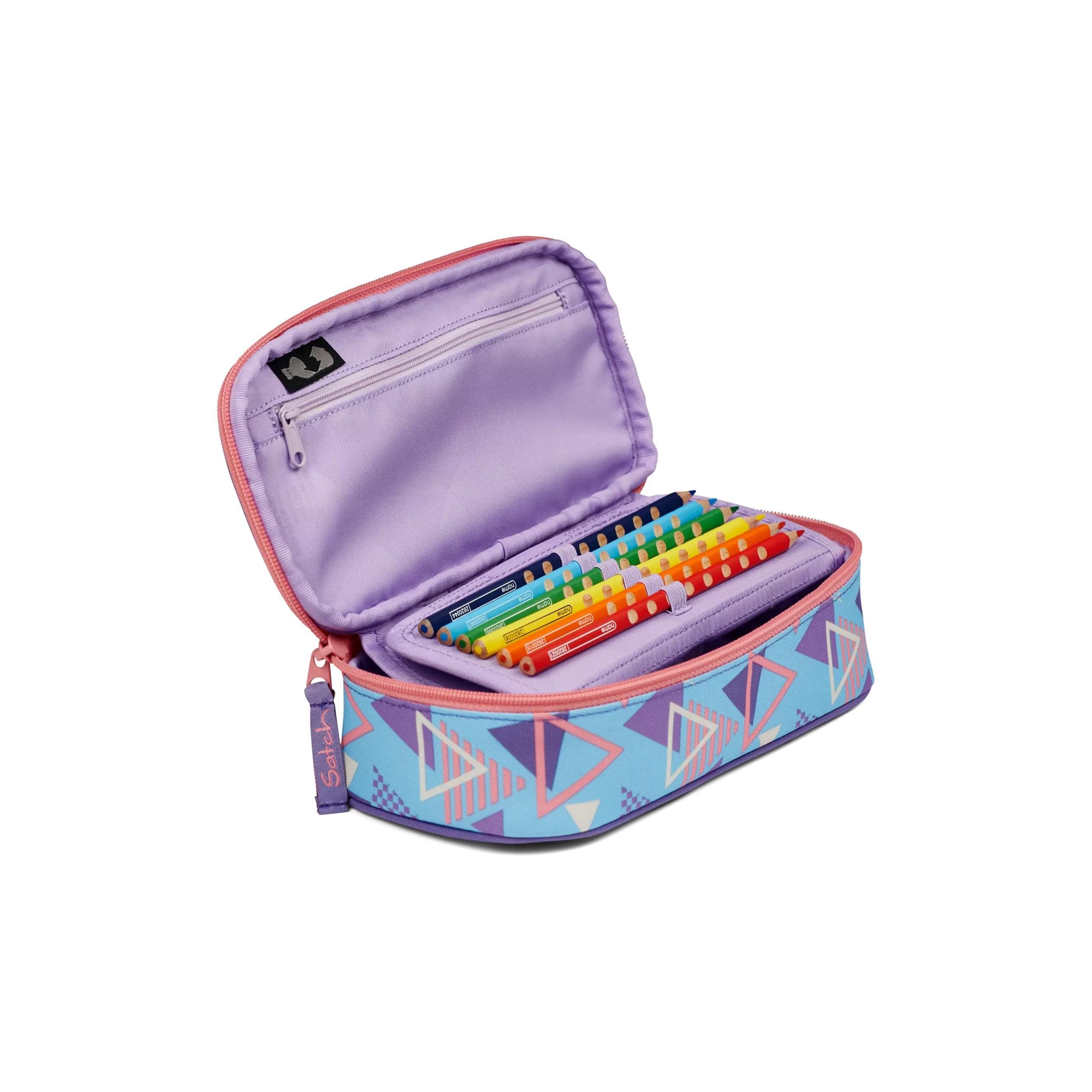 Satch Schlamperbox extra gross inkl. Trennfach Reissverschlussfach Stiftehalter Geodreieck Sichtfenster für Stundenplan