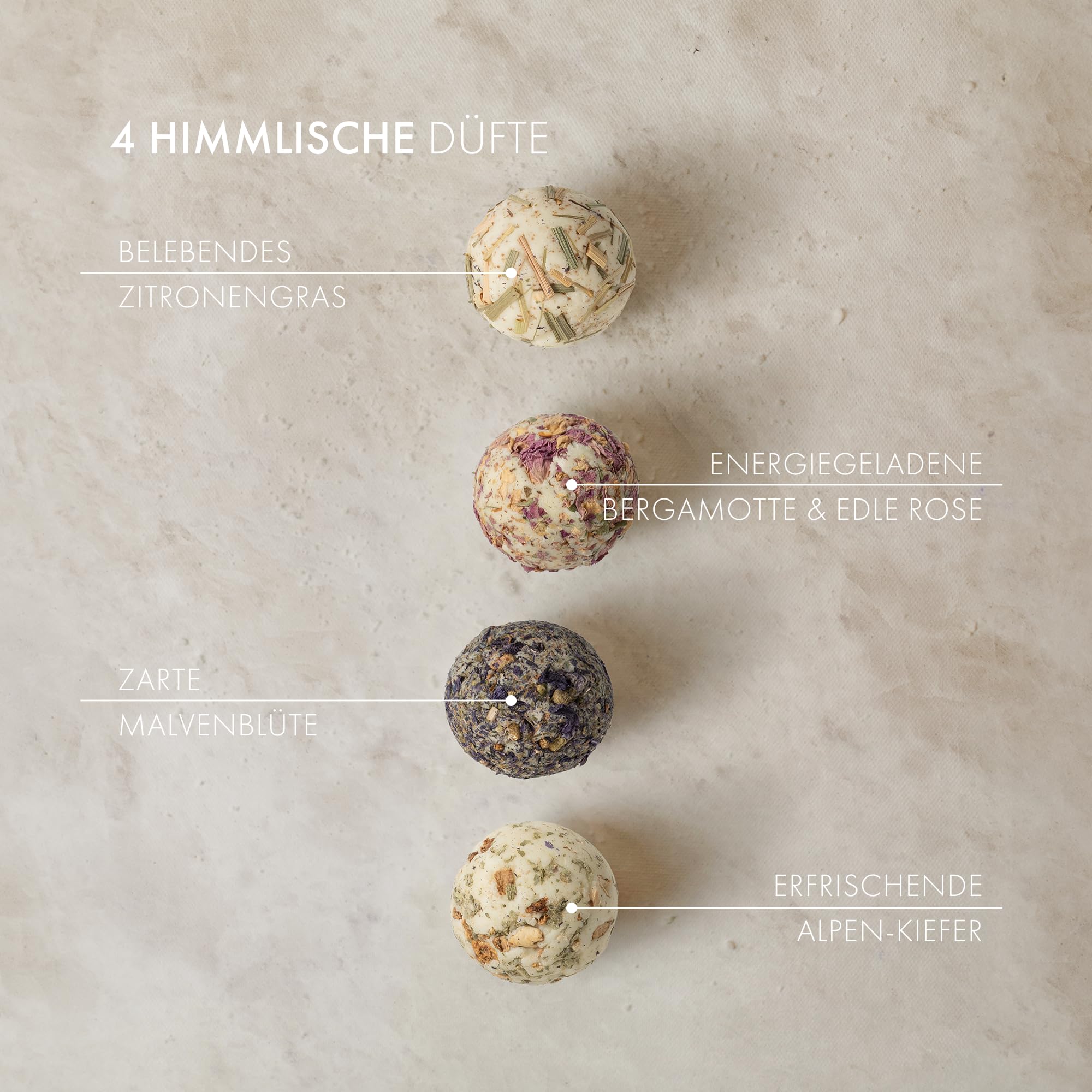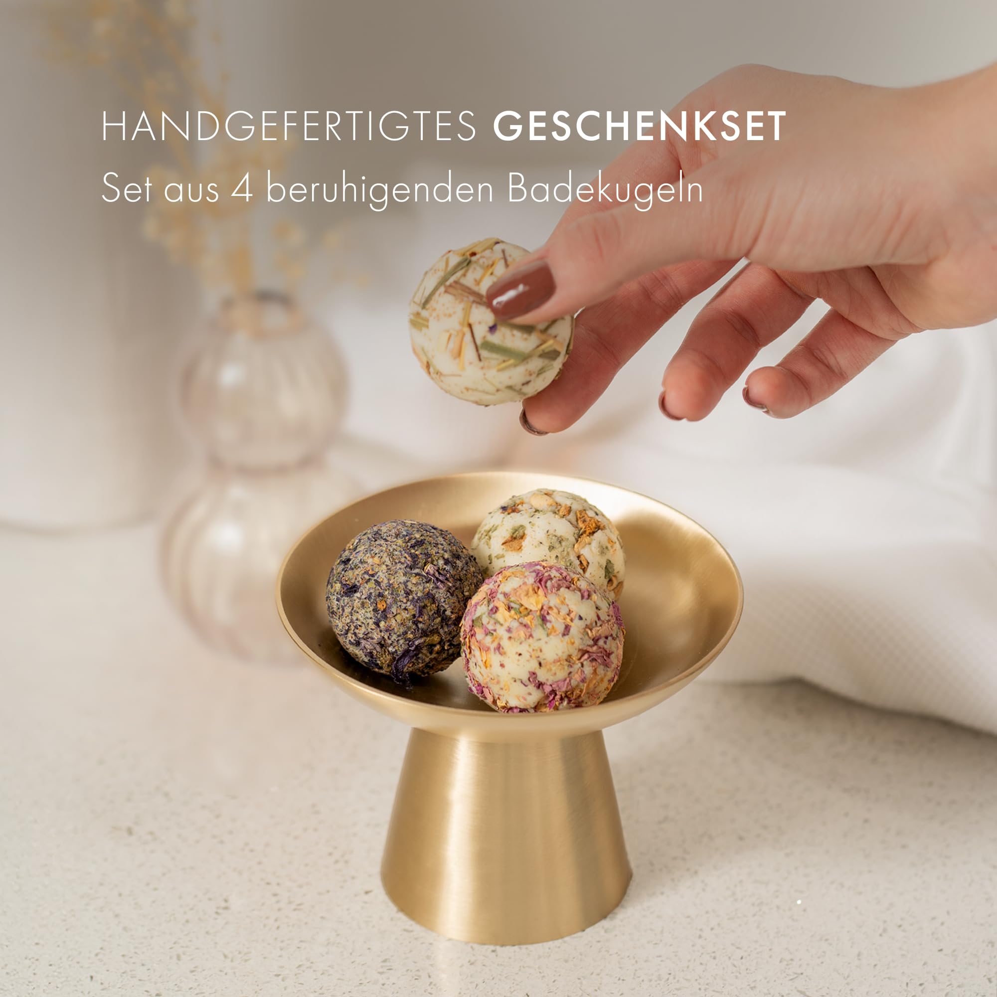 Satin Naturel luxuriöses Geschenkset für Frauen – 4 Badebomben Vegan – Wellness Pflege & Relax – Badebomben Set – Weihnachtsgeschenkidee – festliches Geschenk – weihnachtliches Geschenk