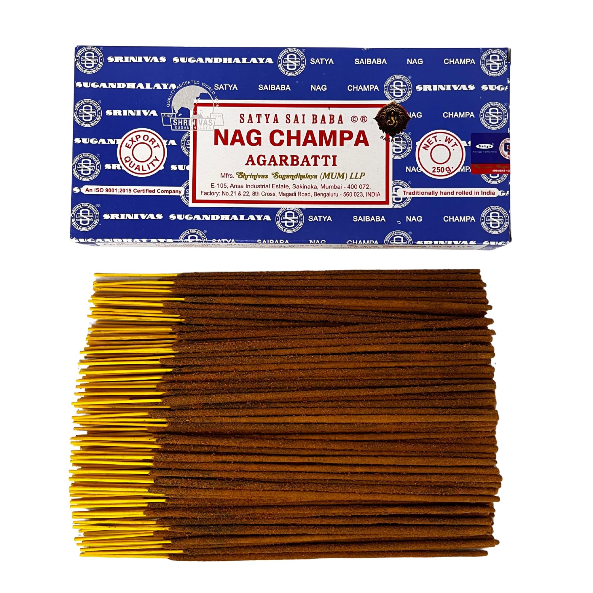 Satya Nag Champa Räucherstäbchen, 1 Packung mit 250 g, Aromatherapie, Meditation, Spiritualität, 100% natürlich, umweltfreundlich