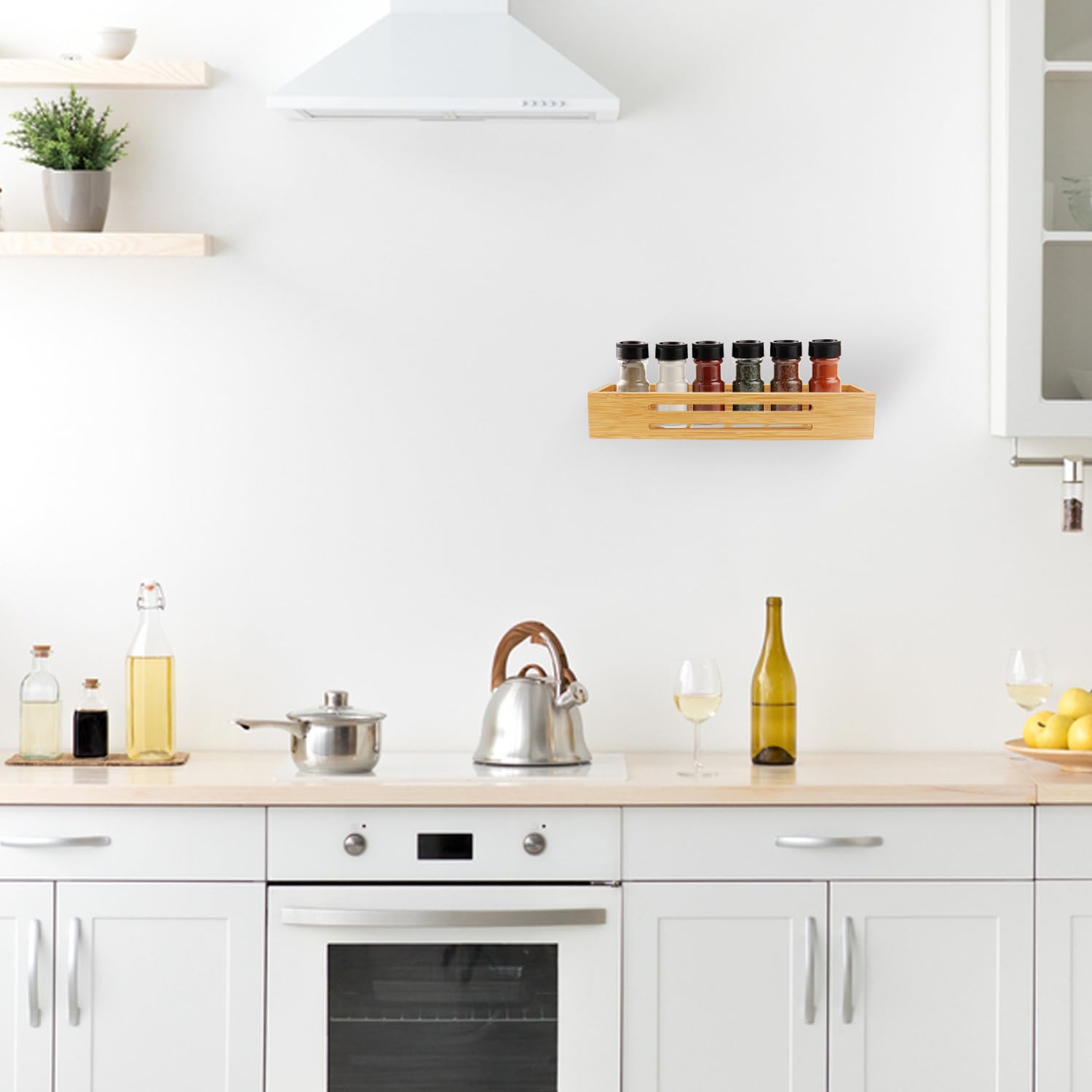 SAUNNIHEN Bambus Gewürzregal Ohne Bohren, 4 Stück Gewürzständer Wand, Gewürzhalter kann Schranktüren Kühlschrank, Stehend oder Hängend verwendbar, Selbstklebende oder Gebohrte Montage