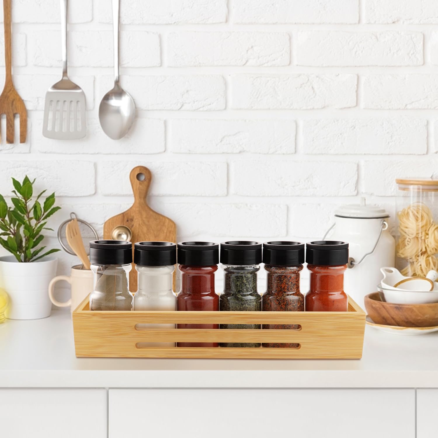 Das einfache und einzigartige Bambus-Design kann nicht nur verschiedene Gewürzflaschen organisieren und aufbewahren, sondern auch als Dekoration dienen, um die Küche zu verschönern!