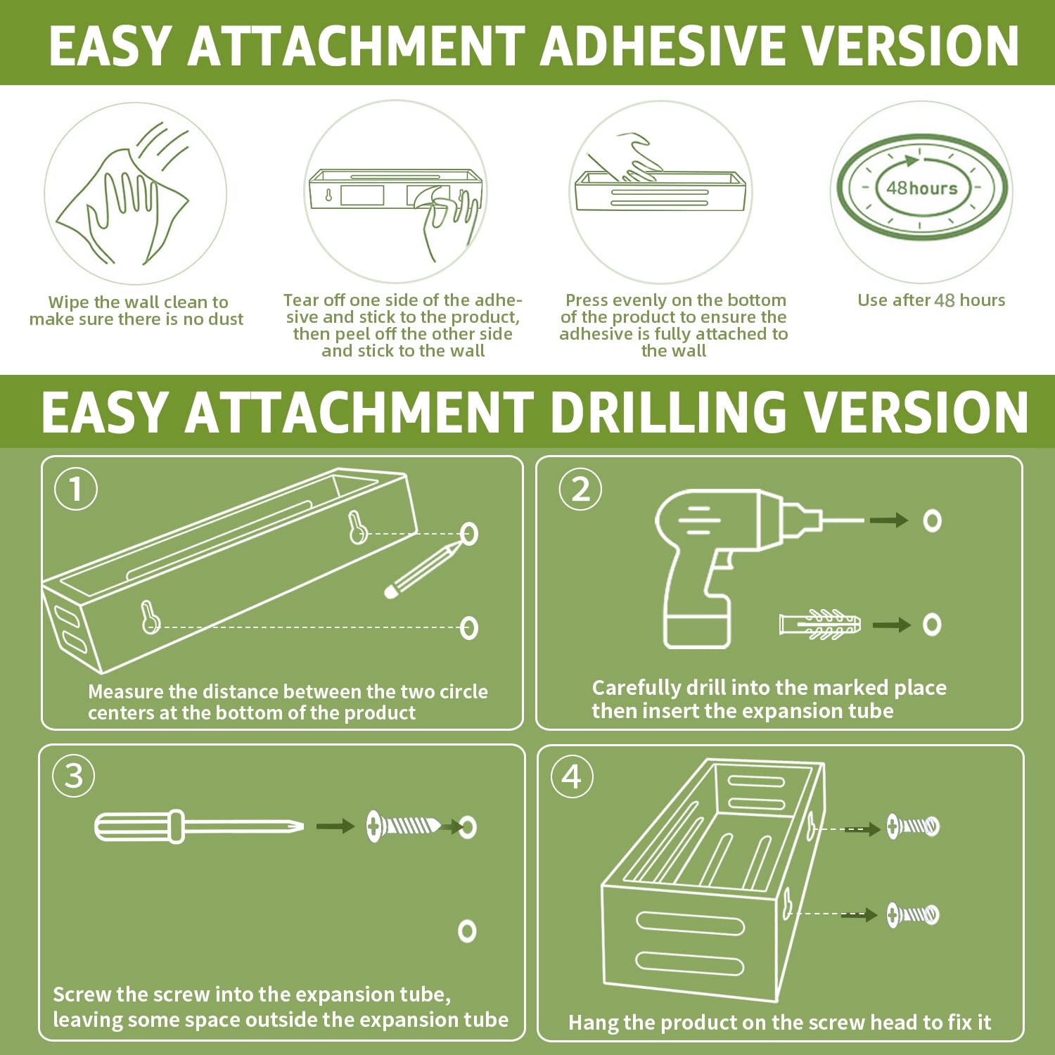 Tipps: Selbstklebende Montage, nur geeignet für glatte Oberflächen wie Theken, Fliesen, Glas, Holz, Marmor, Metall etc. Nicht geeignet für raue Oberflächen wie Tapeten, gestrichene Wände, Putzwände, Betonwände