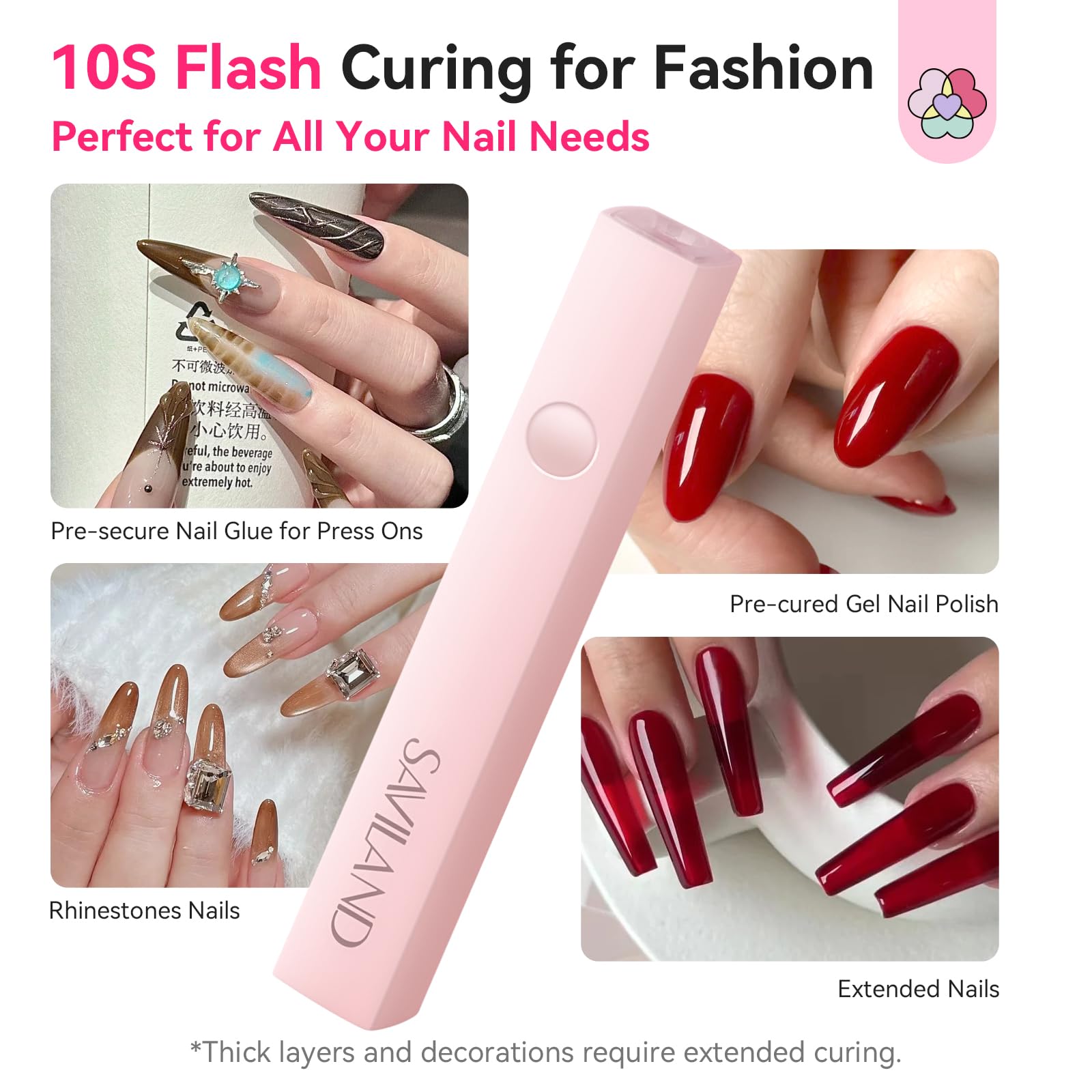 SAVILAND Handheld UV Lampe für Gelnägel – Mini UV/LED Nagellampe wiederaufladbar, tragbar & kabellos, mit Dual-Timer zum Aushärten von Gel Nagellack, Nagelkleber & Nail Tips