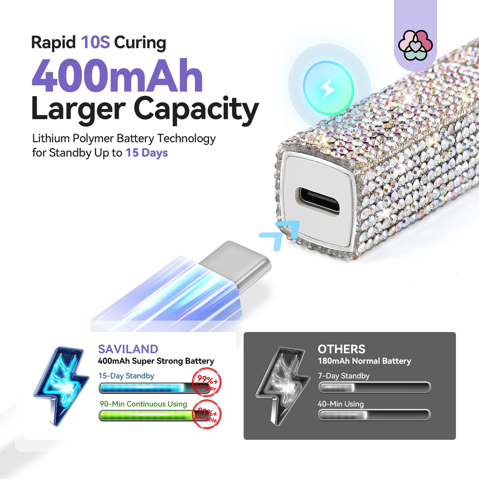 Saviland U V Lampe für Gelnägel, Mini U V Lampe für Nägel【Schützen Sie die Haut】【Wiederaufladbar】Klein LED Nagellack Trocknergerät für Nagellack Aufbaugel Nail Tips nagelkleber(Silber Diamant)