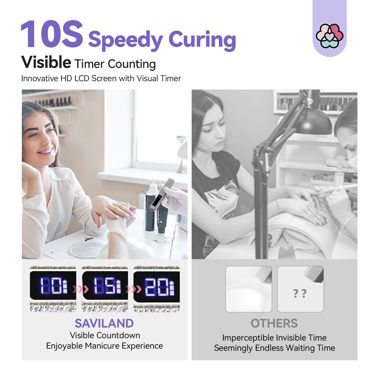 Die Saviland UV Lampe für Gelnägel ist eine kompakte und leistungsstarke Lösung für das schnelle und gleichmässige Aushärten von Gel-Nagellack. Sie eignet sich ideal für den Einsatz zu Hause, unterwegs oder im professionellen Nagelstudio.
