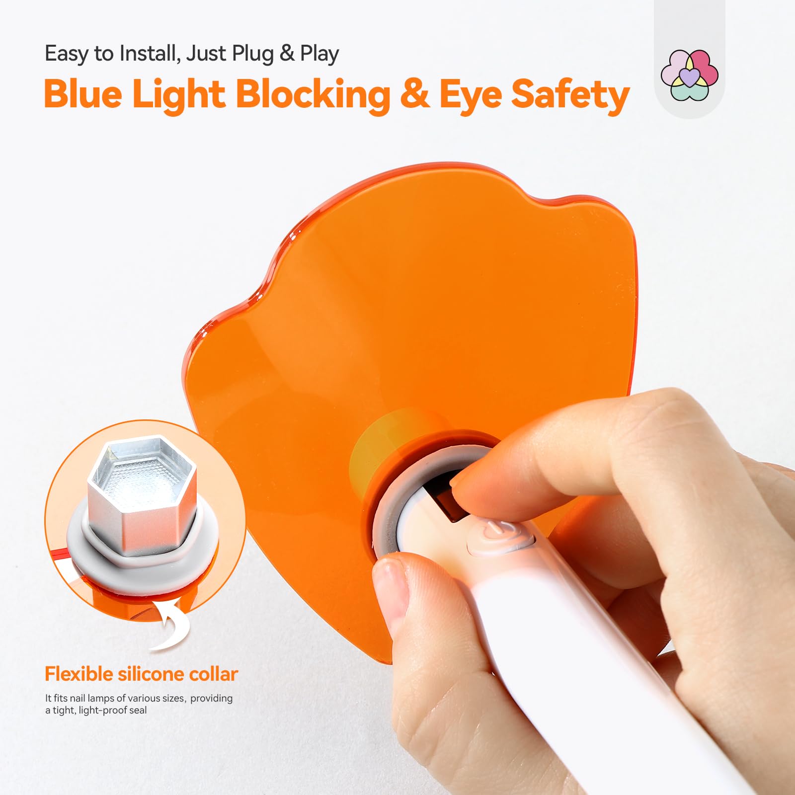 • Hohe Kompatibilität & einfache Anwendung – Dank des flexiblen Silikon-Mittelstücks passt sich der Augenschutz den meisten handgehaltenen UV-/LED-Nagellampen an. Die Montage ist besonders einfach und funktioniert nach dem Plug-and-Play-Prinzip, perfekt für Nageltechniker mit unterschiedlichen Lampenmodellen.