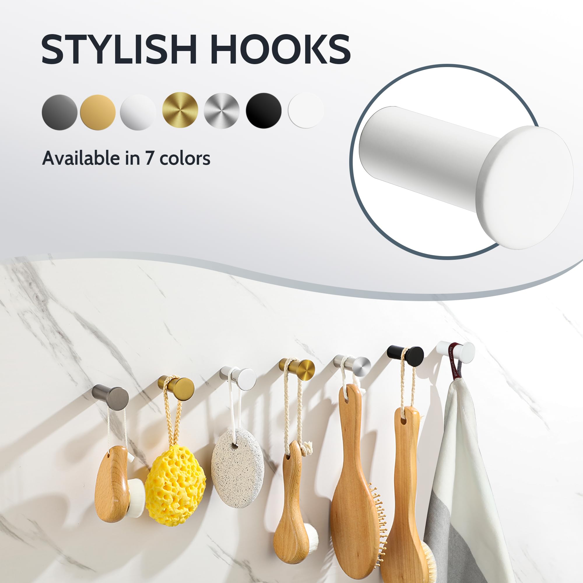 SAYAYO Garderobenhaken Edelstahl, Kleiderhaken Wand Haken zum Schrauben Handtuchhaken Wandhaken Garderobe Weiss 2 Stück für Badezimmer, Küche, Schlafzimmer