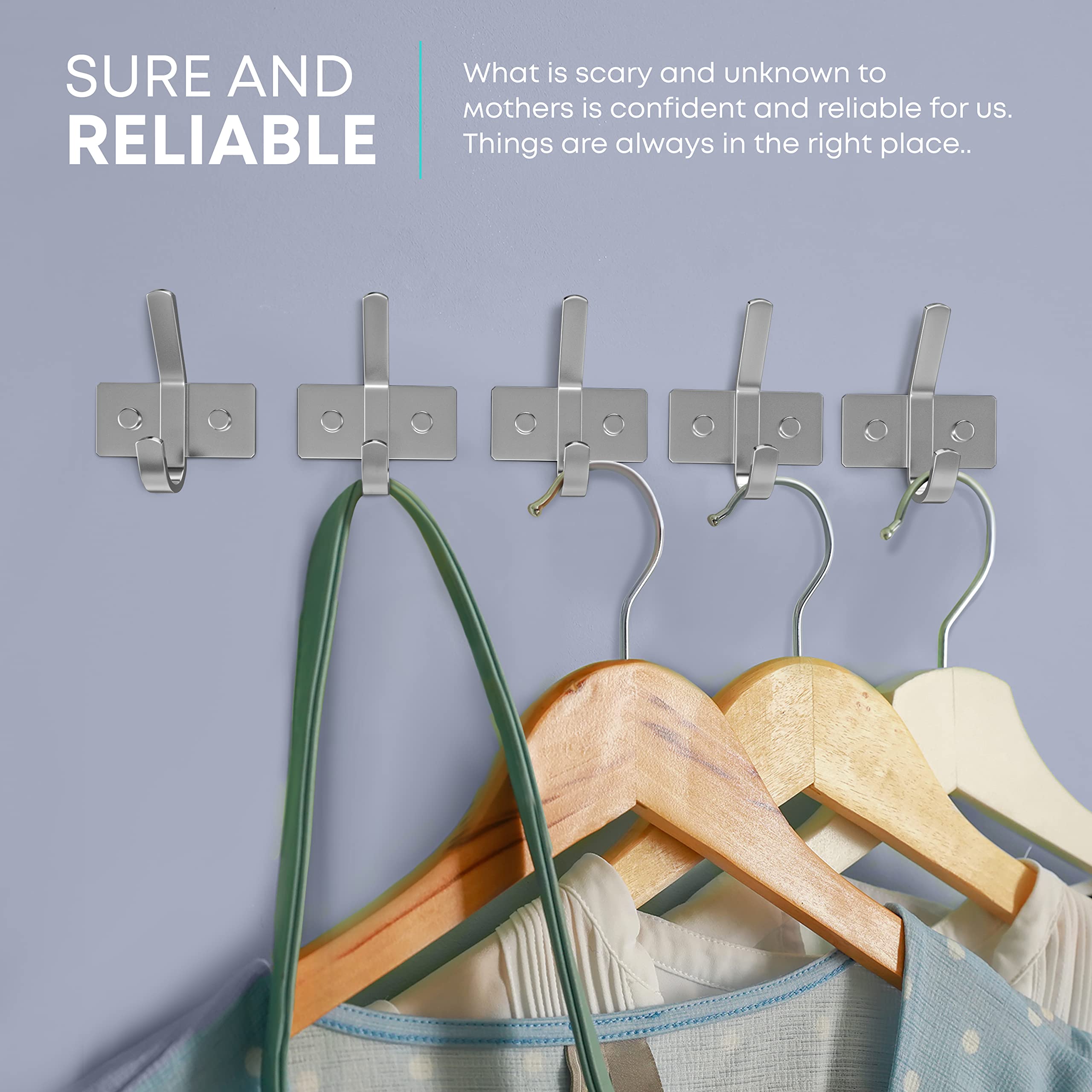 SAYONEYES Gebürstete Nickel-Wandhaken, strapazierfähige SUS304-Edelstahl-Doppelwandhaken, Badezimmer-, Eingangsbereich-Haken zum Aufhängen von Handtüchern, Taschen, Schlüsseln, Jacke, 5er-Pack