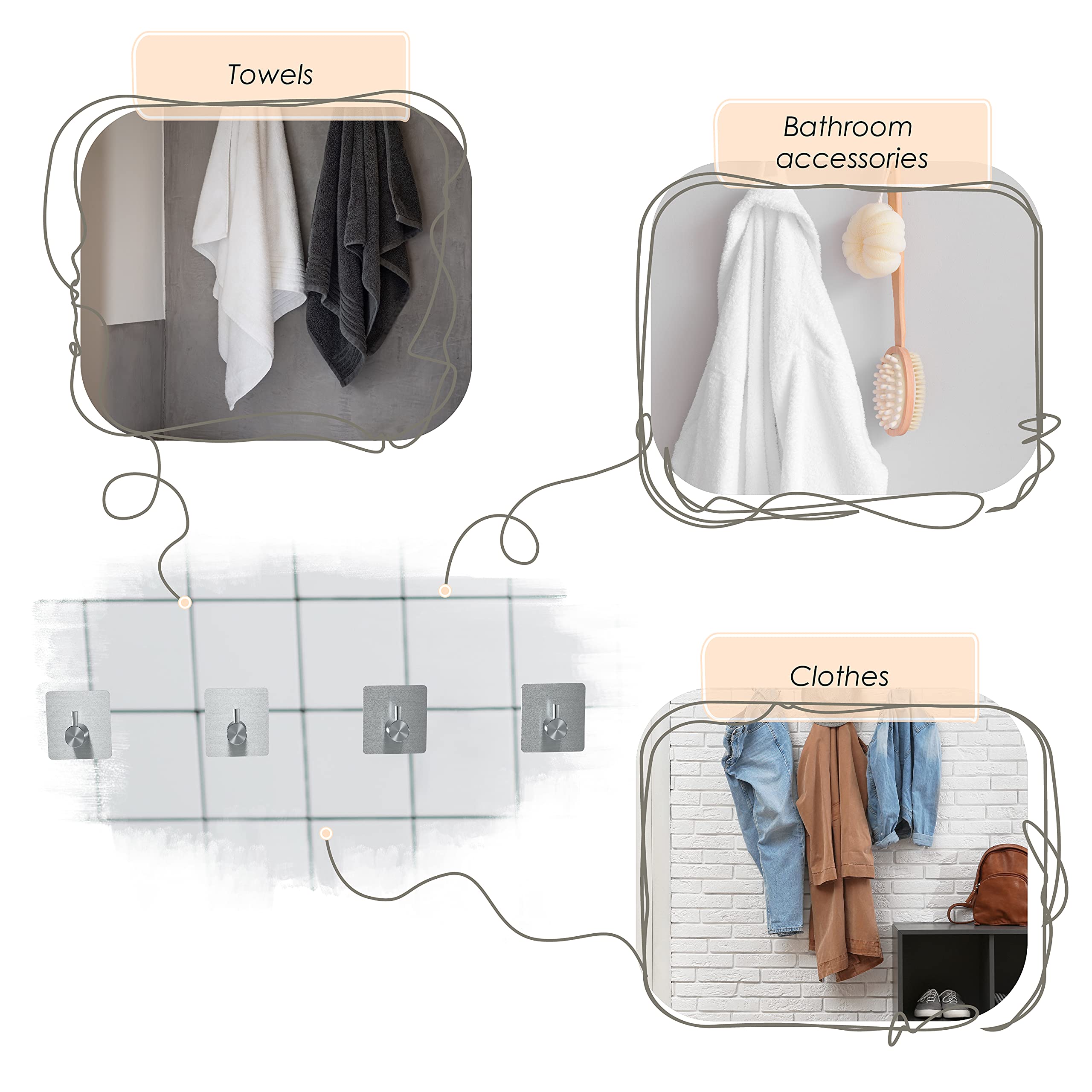 ???? Es handelt sich um Kleiderhaken, Huthaken, Küchentuchhaken, Badezimmertürhaken, 3 m Bilder-Aufhängehaken, Geldbörsenhaken für Wände, Dusch-Saugnapf-Haken usw.