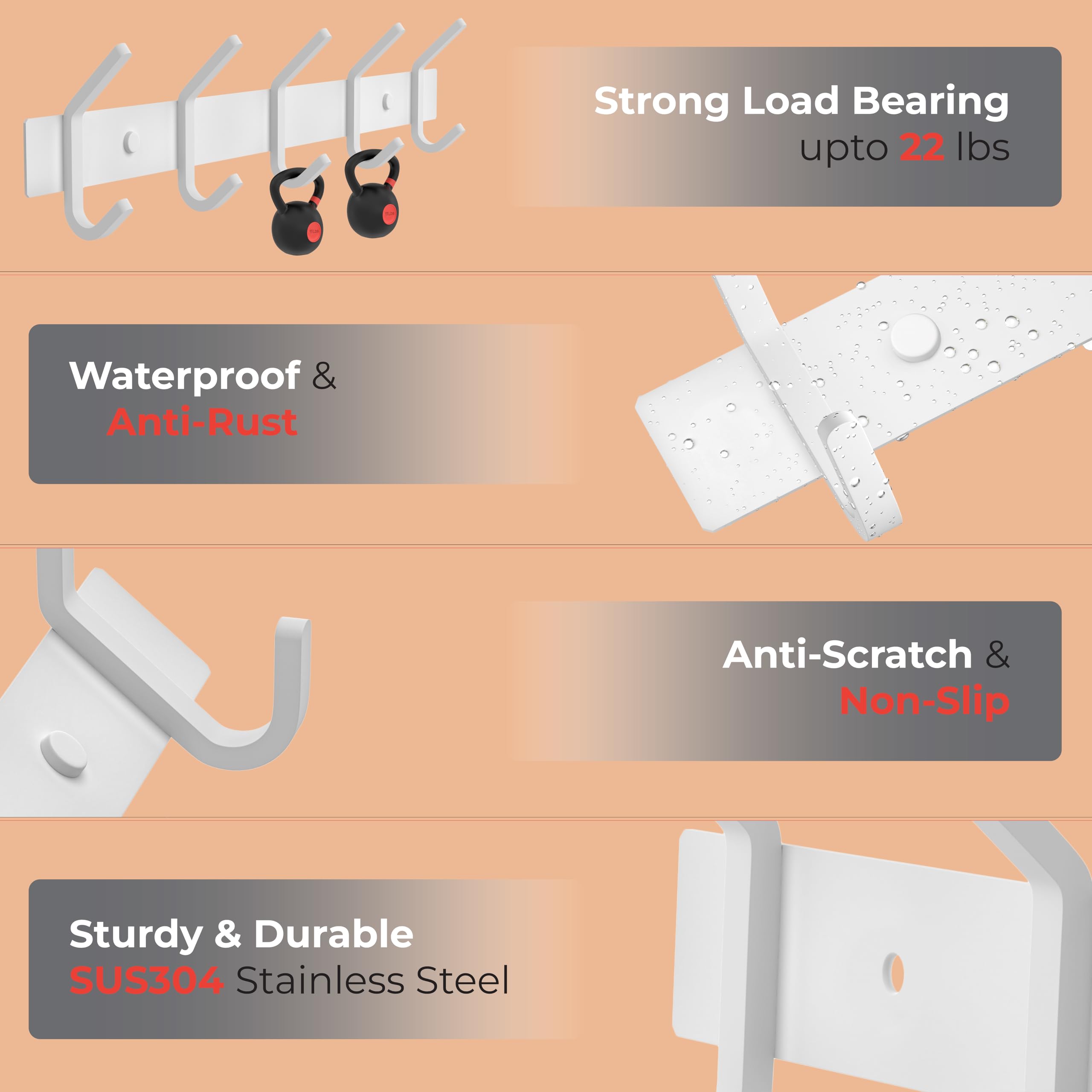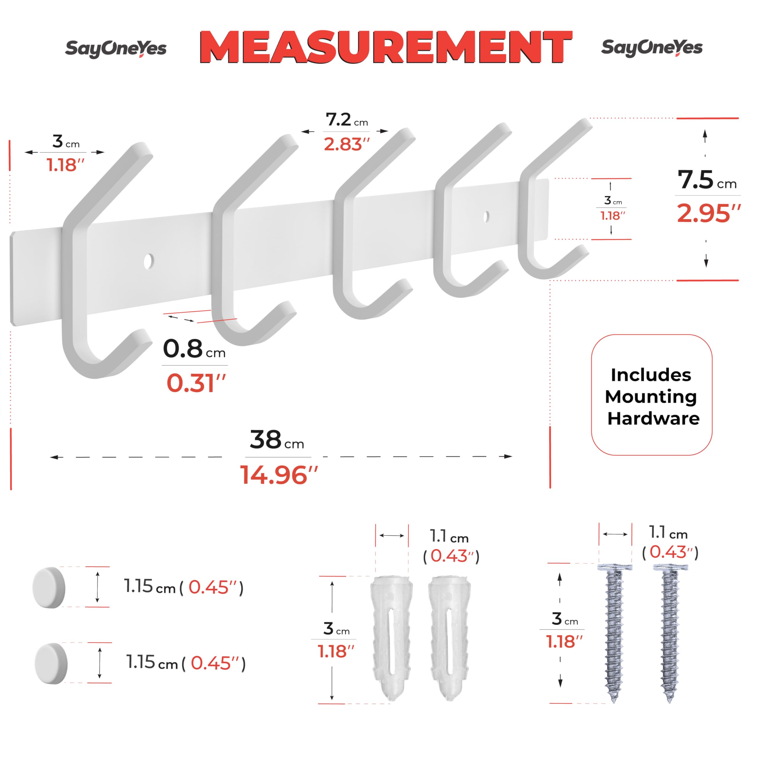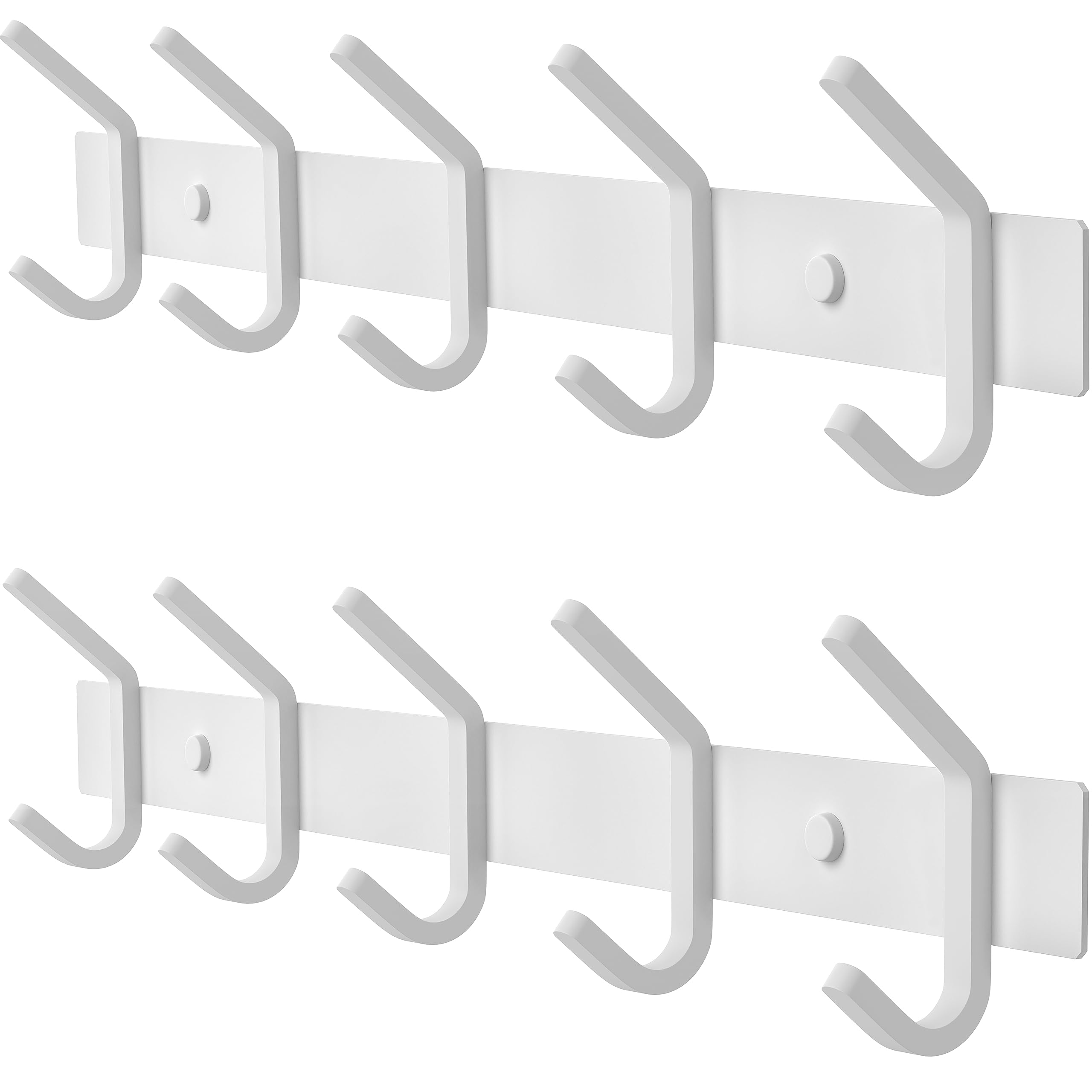 SAYONEYES Garderobenleiste zur Wandmontage, 38,1-cm-Edelstahl-Hakenleiste mit 5 strapazierfähigen Doppelhaken, für Eingangsbereich, Badezimmer, Schlafzimmer, Handtuch-, Hut-Organizer, Weiss, 2er-Pack