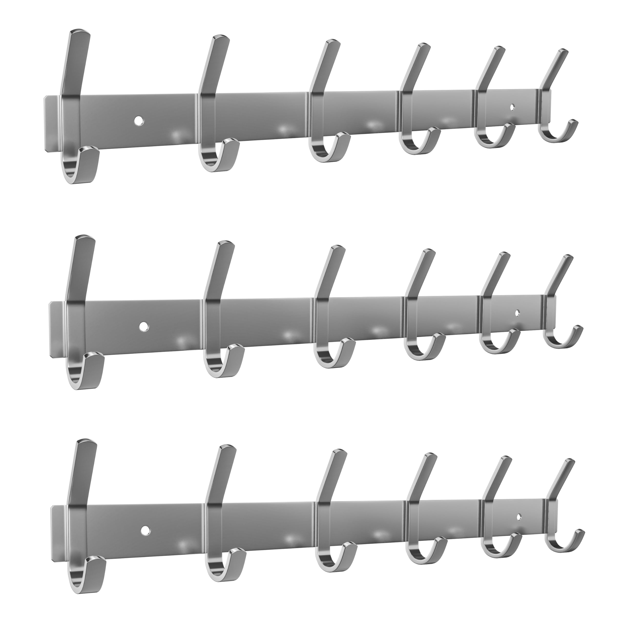 Garderobenleiste zur Wandmontage, gebürstetes Nickel, 43,2-cm-Edelstahl-Hakenleiste, 6 strapazierfähige Doppelhaken, für Eingangsbereich, Badezimmer, Schlafzimmer, Handtuch-, Hut-Organizer, 3er-Pack