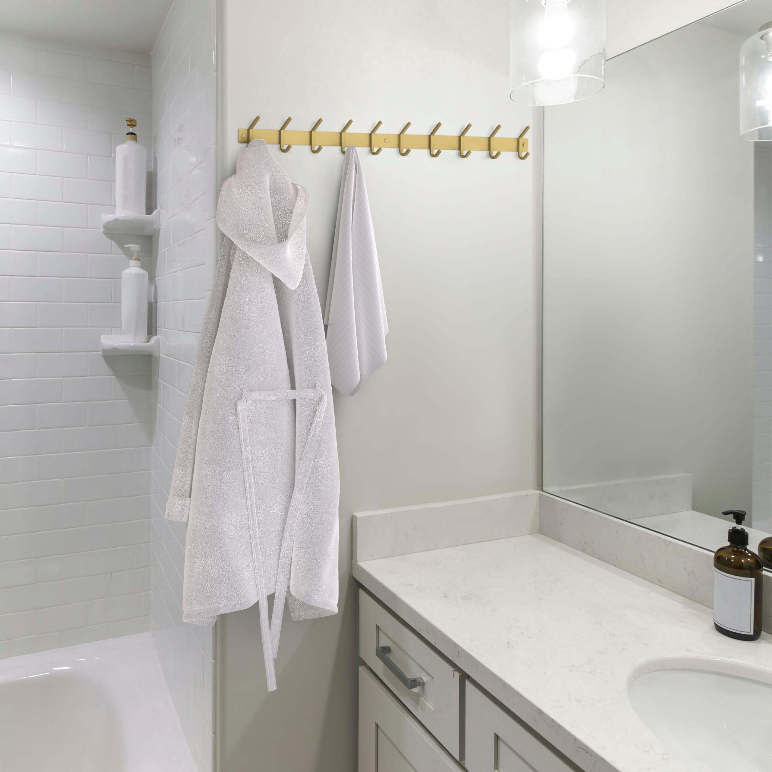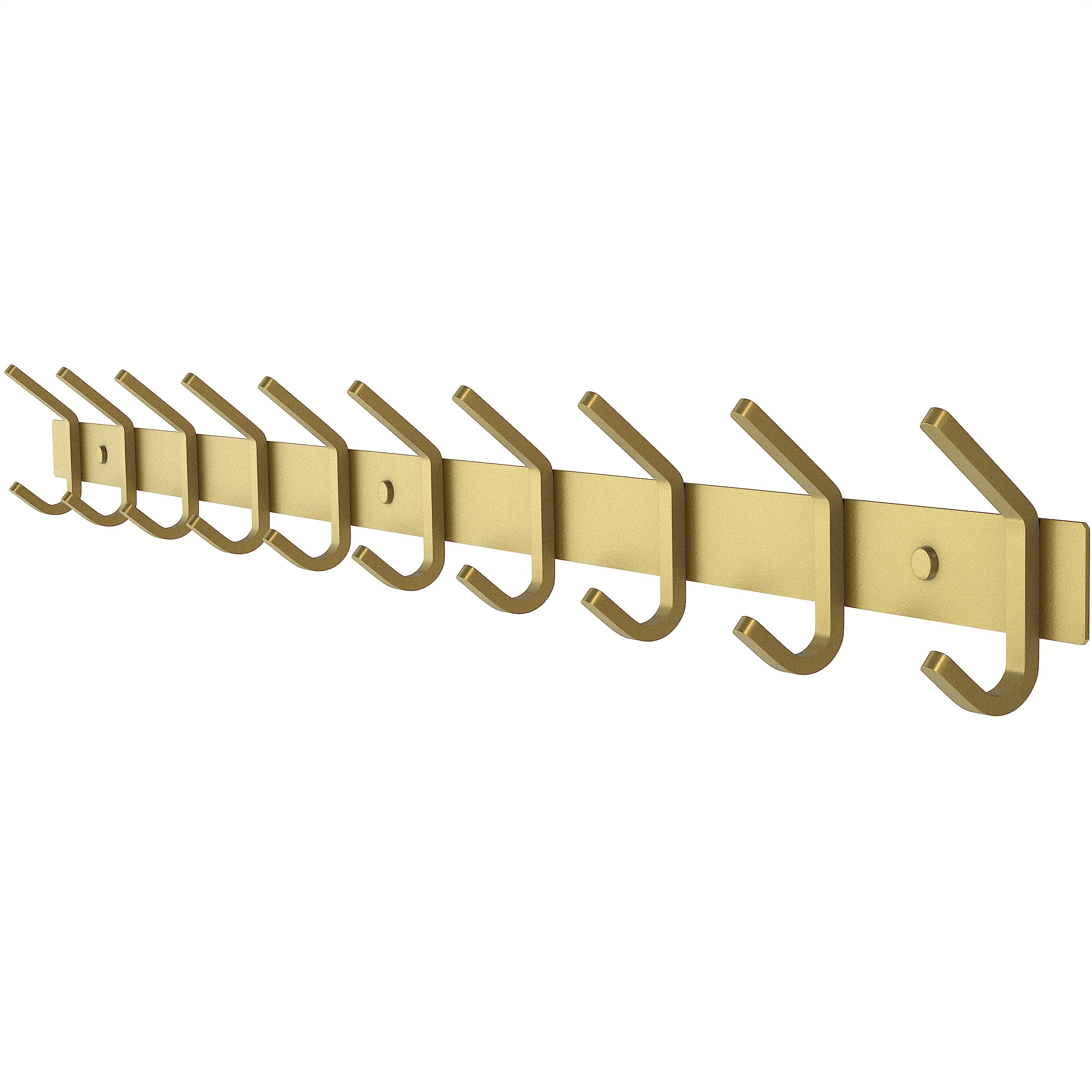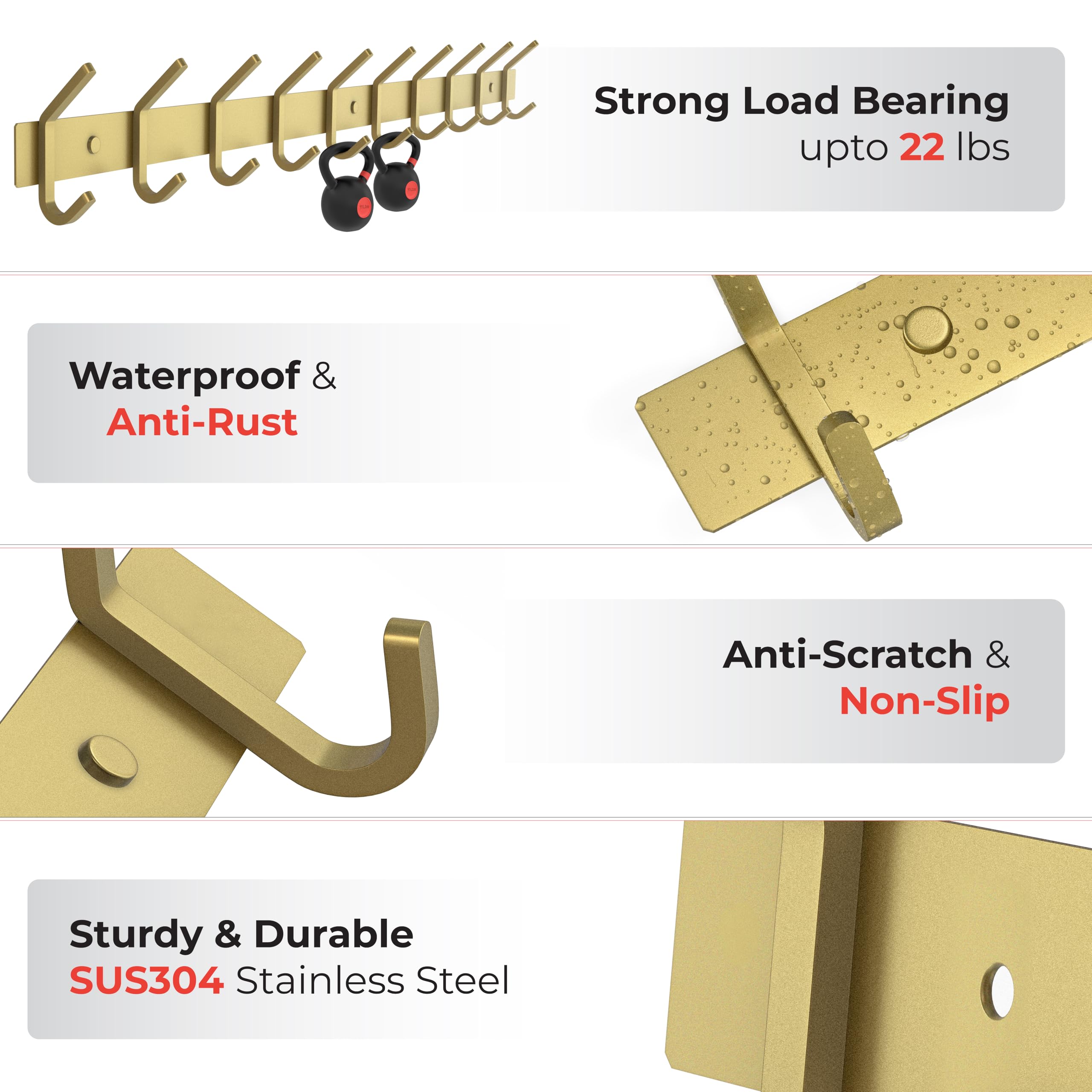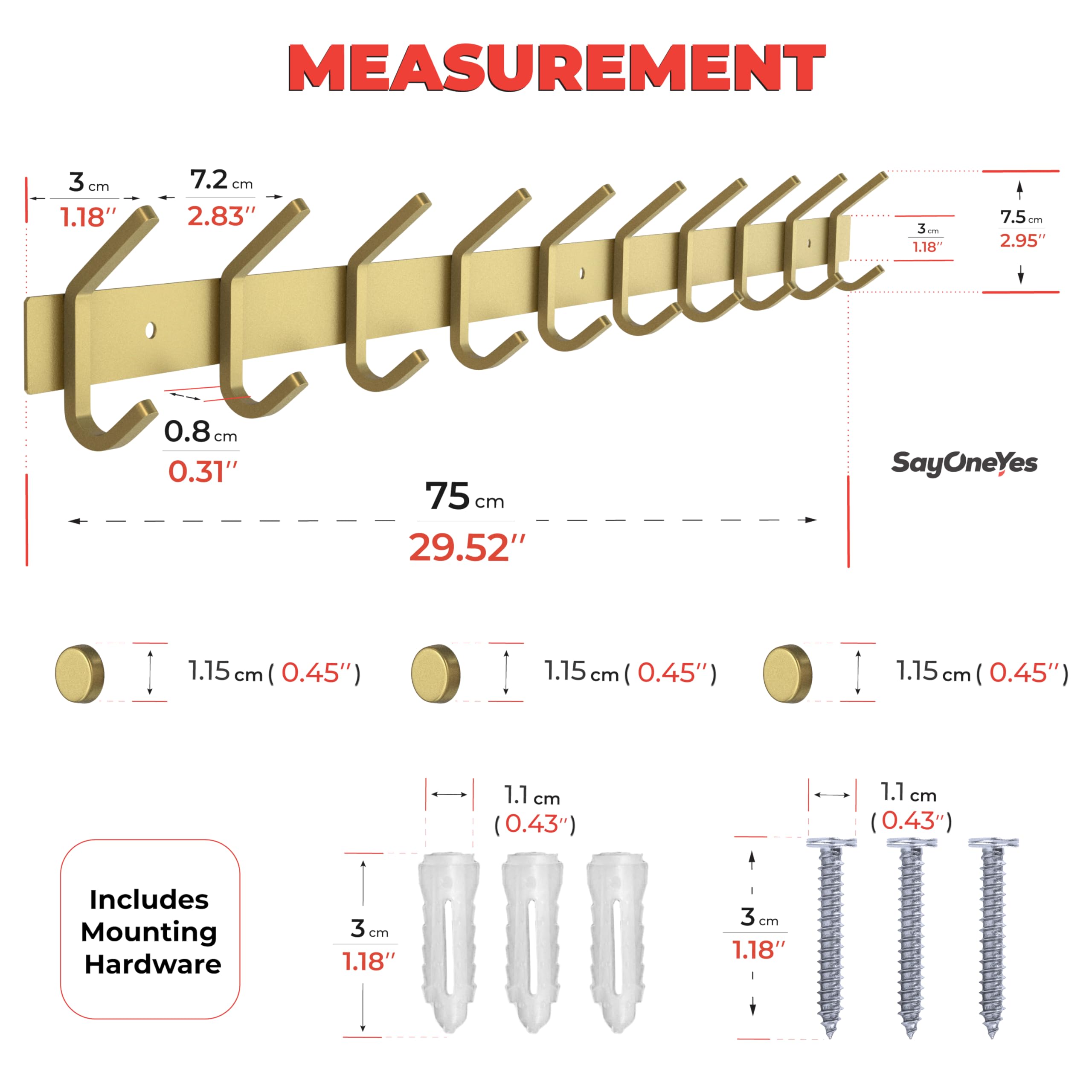 SAYONEYES Wandgarderobe Gebürstet Gold - 76.2 cm Edelstahl Stange mit 10 Doppelgarderobenhaken für Eingangsbereich, Badezimmer, Schlafzimmer, Küche - Moderne Gold Hakenleiste für Mäntel, Hüte