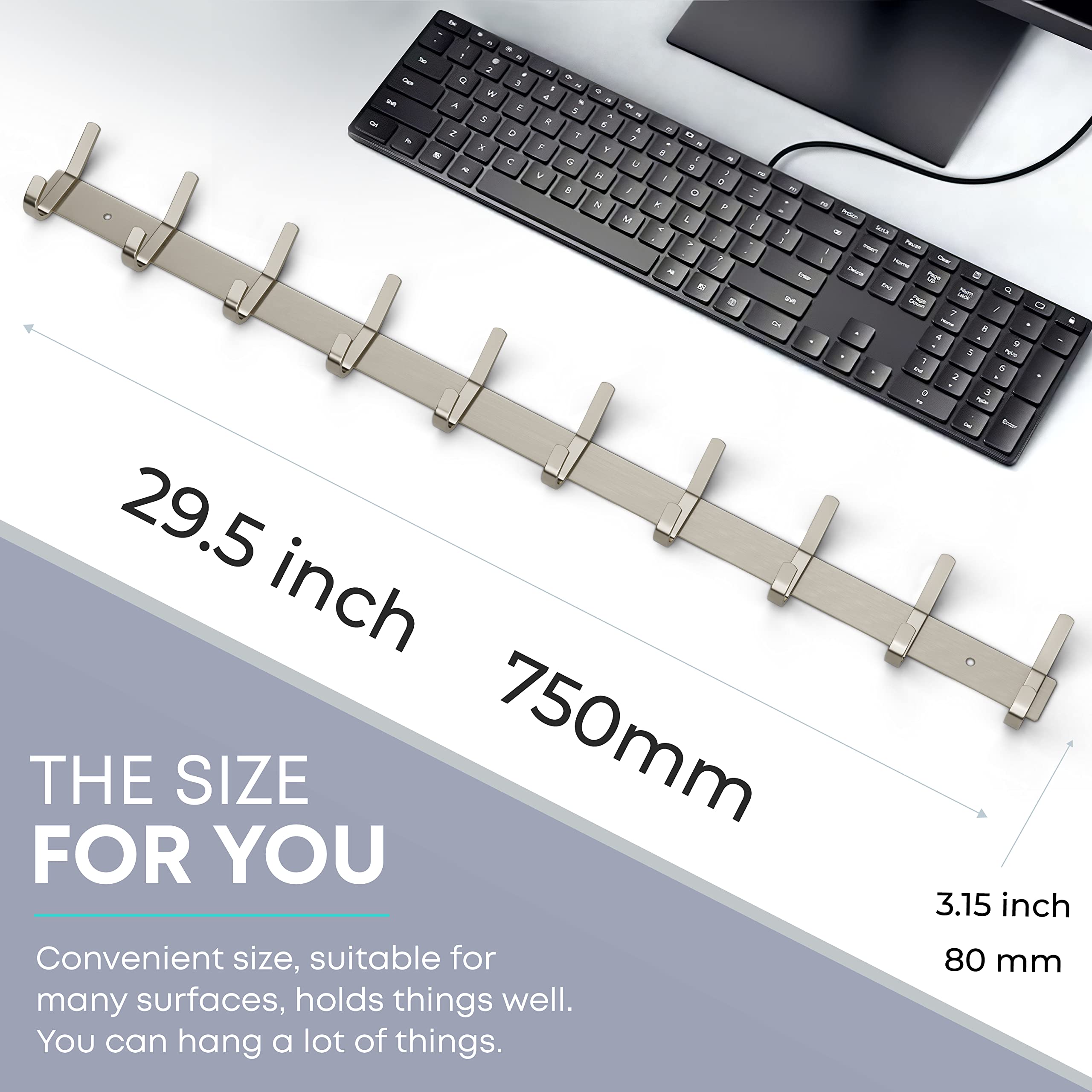 Garderobenleiste Wandhalterung – gebürstetes Nickel 76,2 cm Edelstahl-Hakenleiste mit 10 robusten Doppel-Kleiderhaken – Wandmontierter Kleiderbügel für Eingangsbereich, Badezimmer, Schlafzimmer