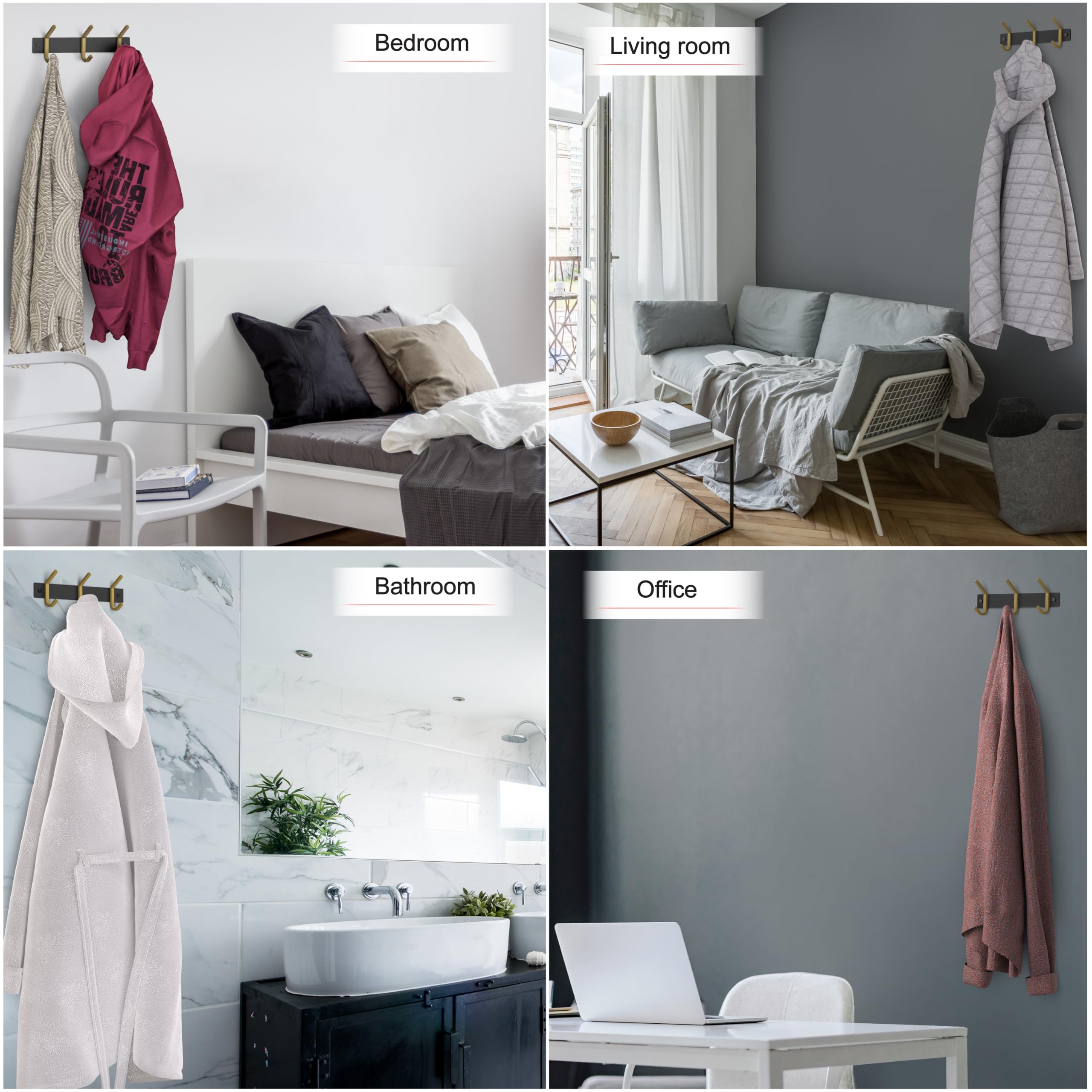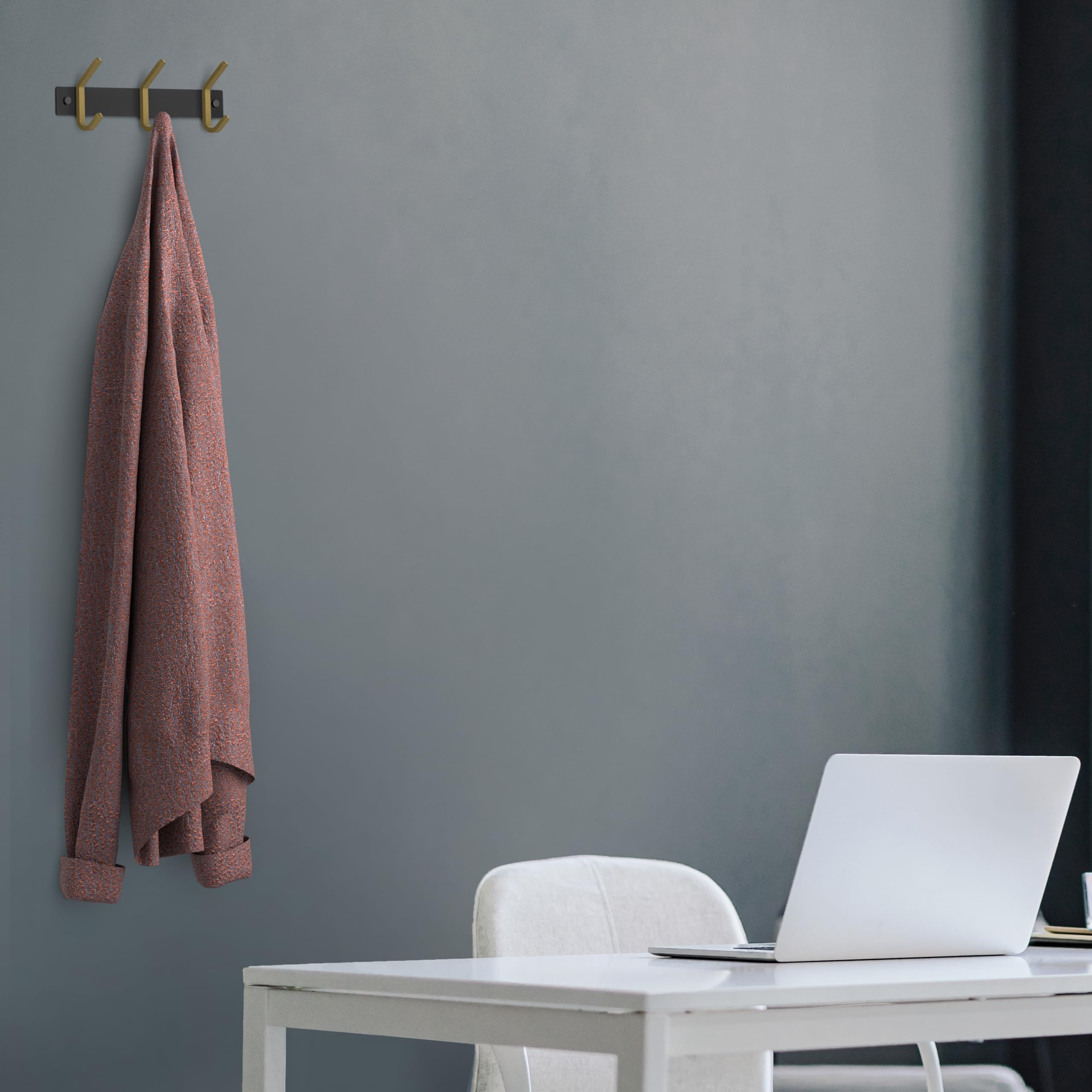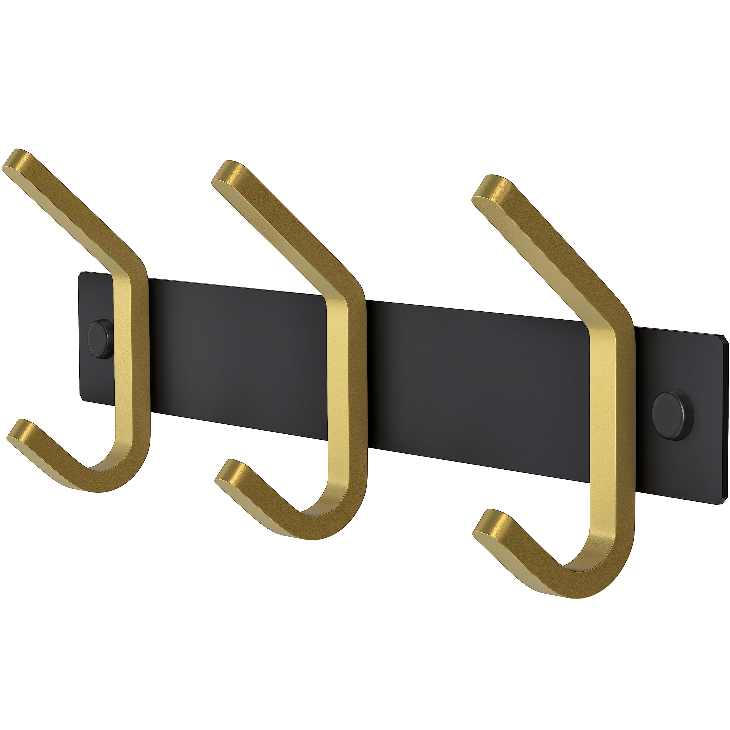 Kleine Garderobenleiste Wandhalterung - Schwarz und Gold Hakenleiste mit 3 Doppelgarderobenhaken, 22,9 cm Edelstahl-Wandhaken für Eingangsbereich, Badezimmer, Schlafzimmer, Schrank, Handtuch, Hut