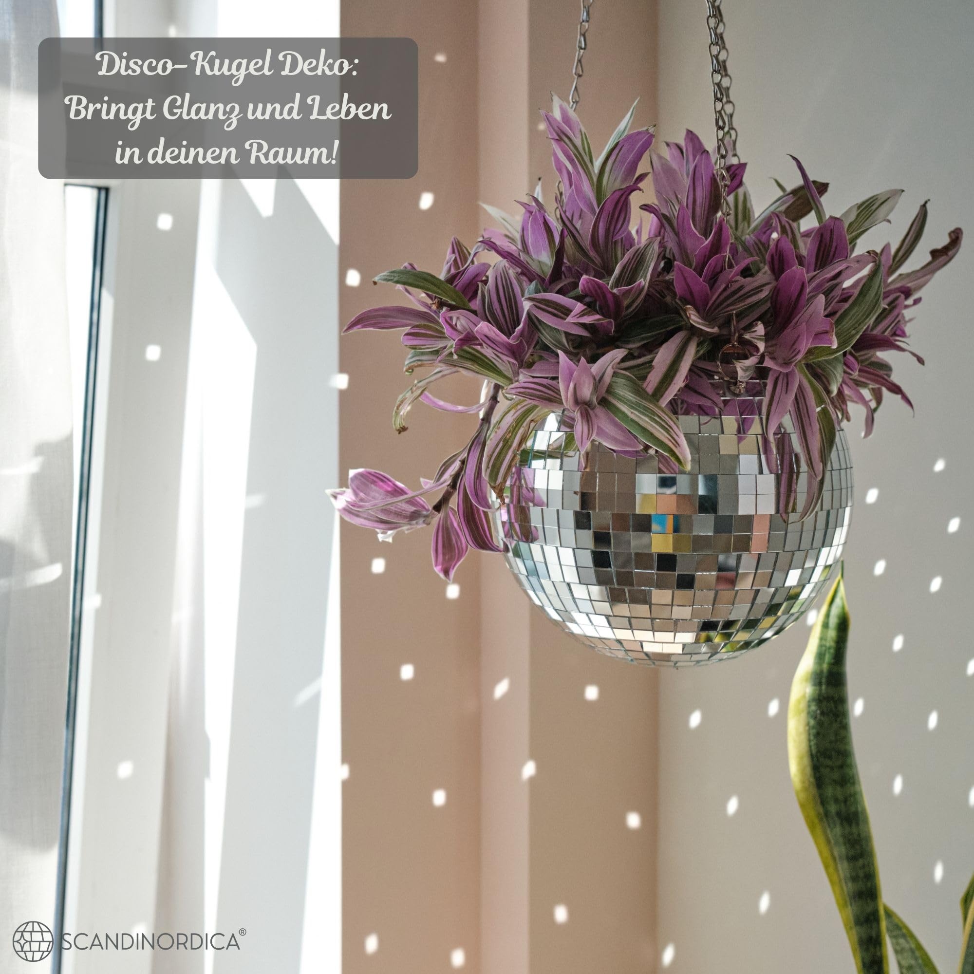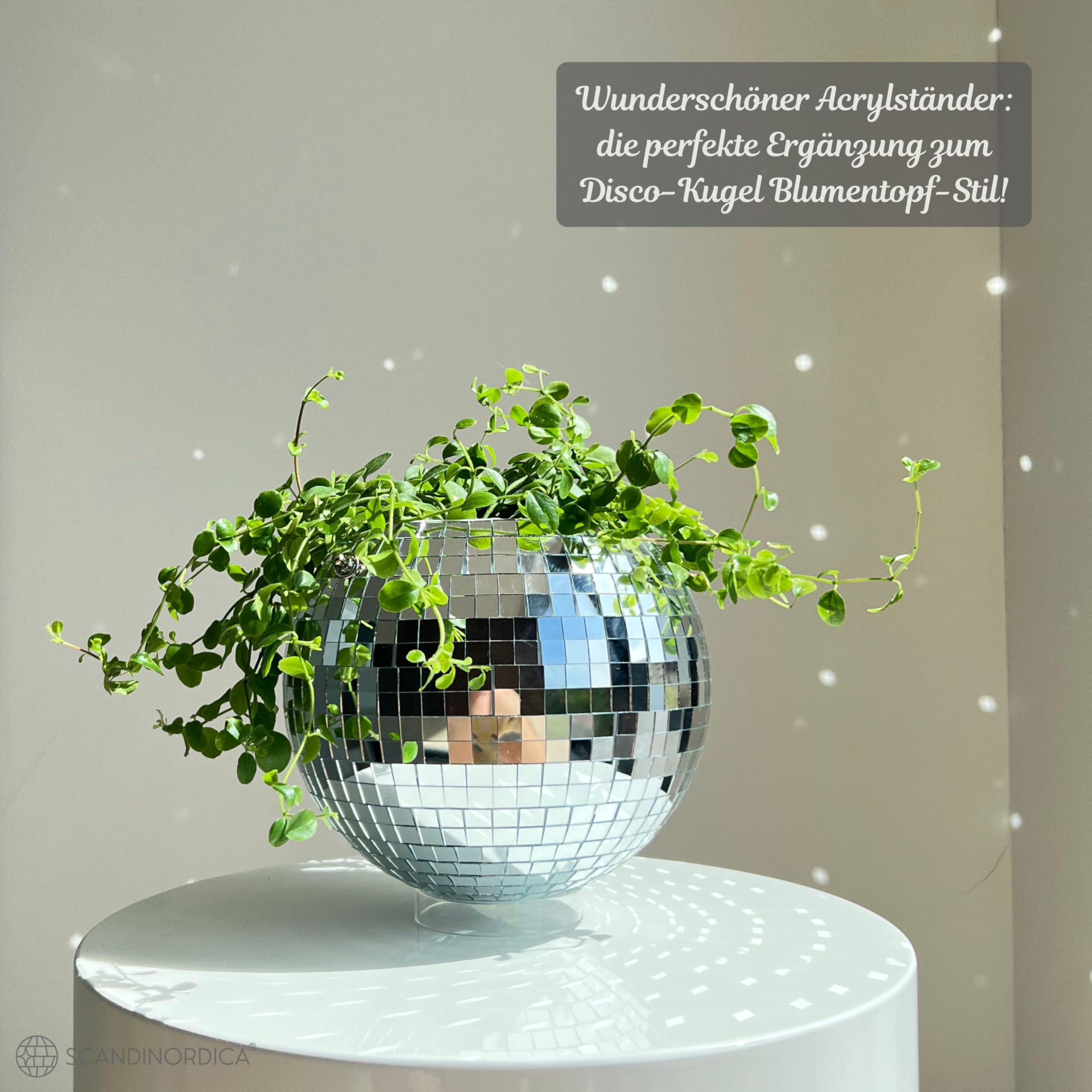 SCANDINORDICA Discokugel blumentopf - Spiegelkugel hängende blumentöpfe, diskokugel Pflanzen, discokugel deko übertopf makramee, Geschenk Freundin | Disco Kugel pflanzentopf – 20 cm Silber
