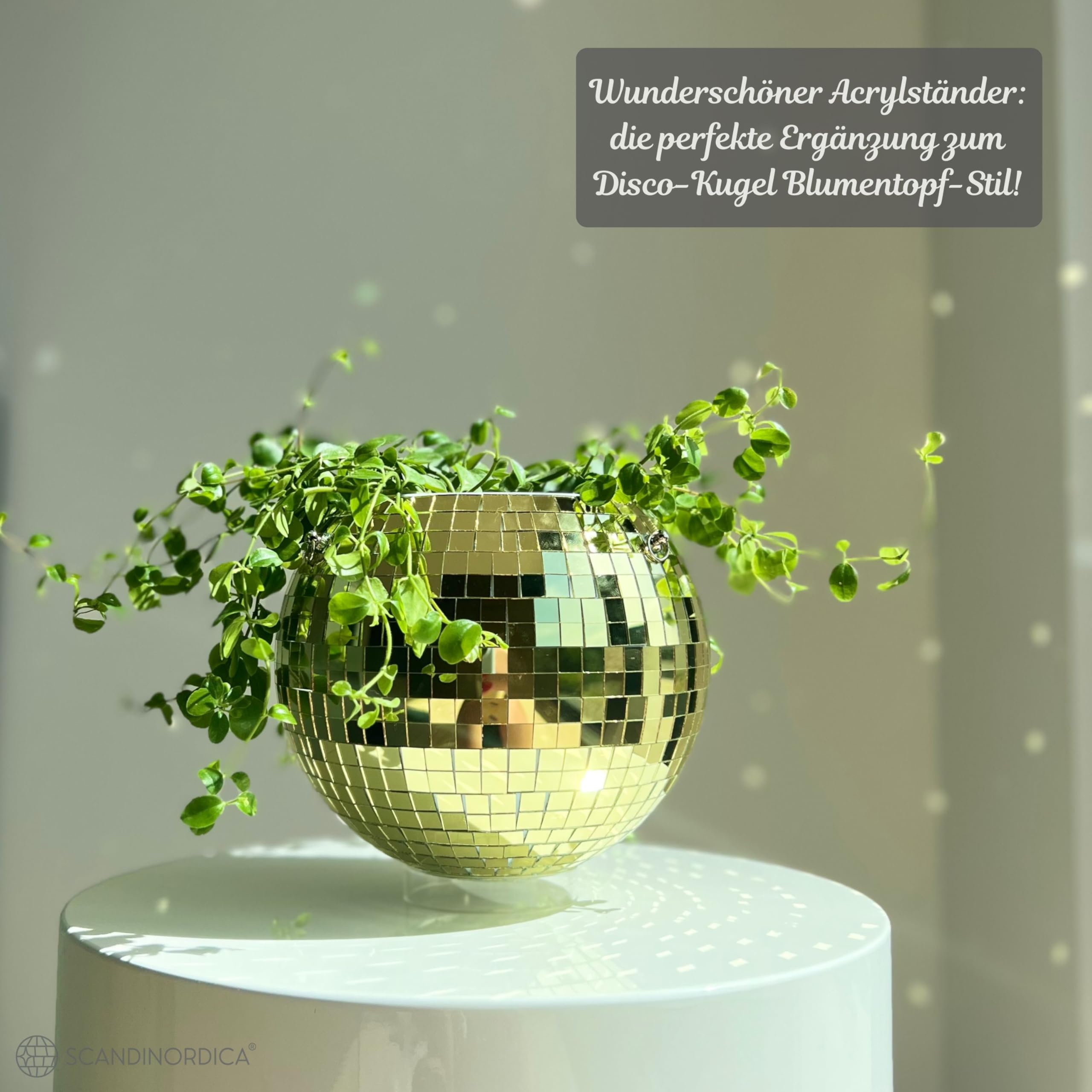 SCANDINORDICA Discokugel blumentopf - Spiegelkugel hängende blumentöpfe, diskokugel Pflanzen, discokugel deko übertopf makramee, Geschenk Freundin | Disco Kugel pflanzentopf – 20 cm Gold
