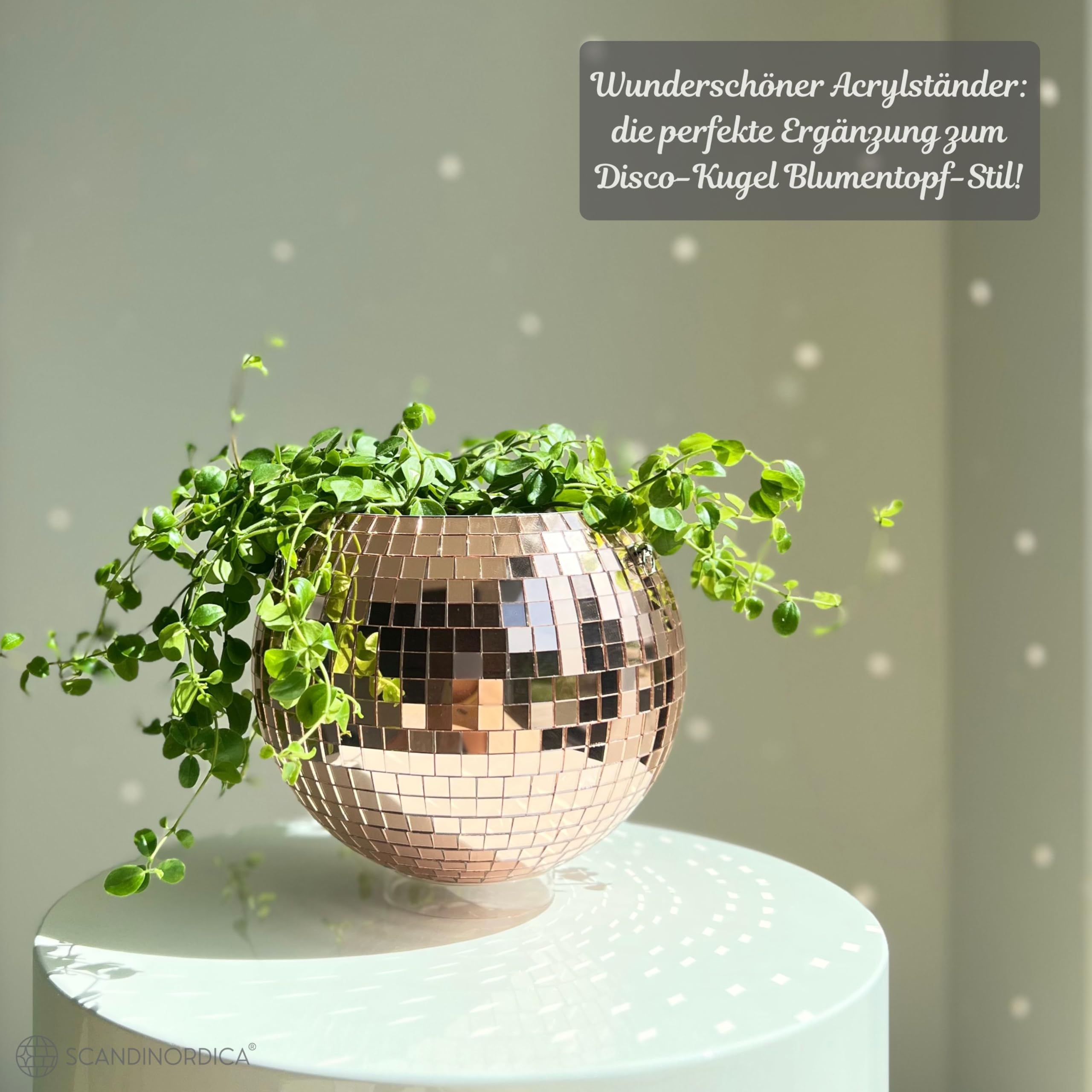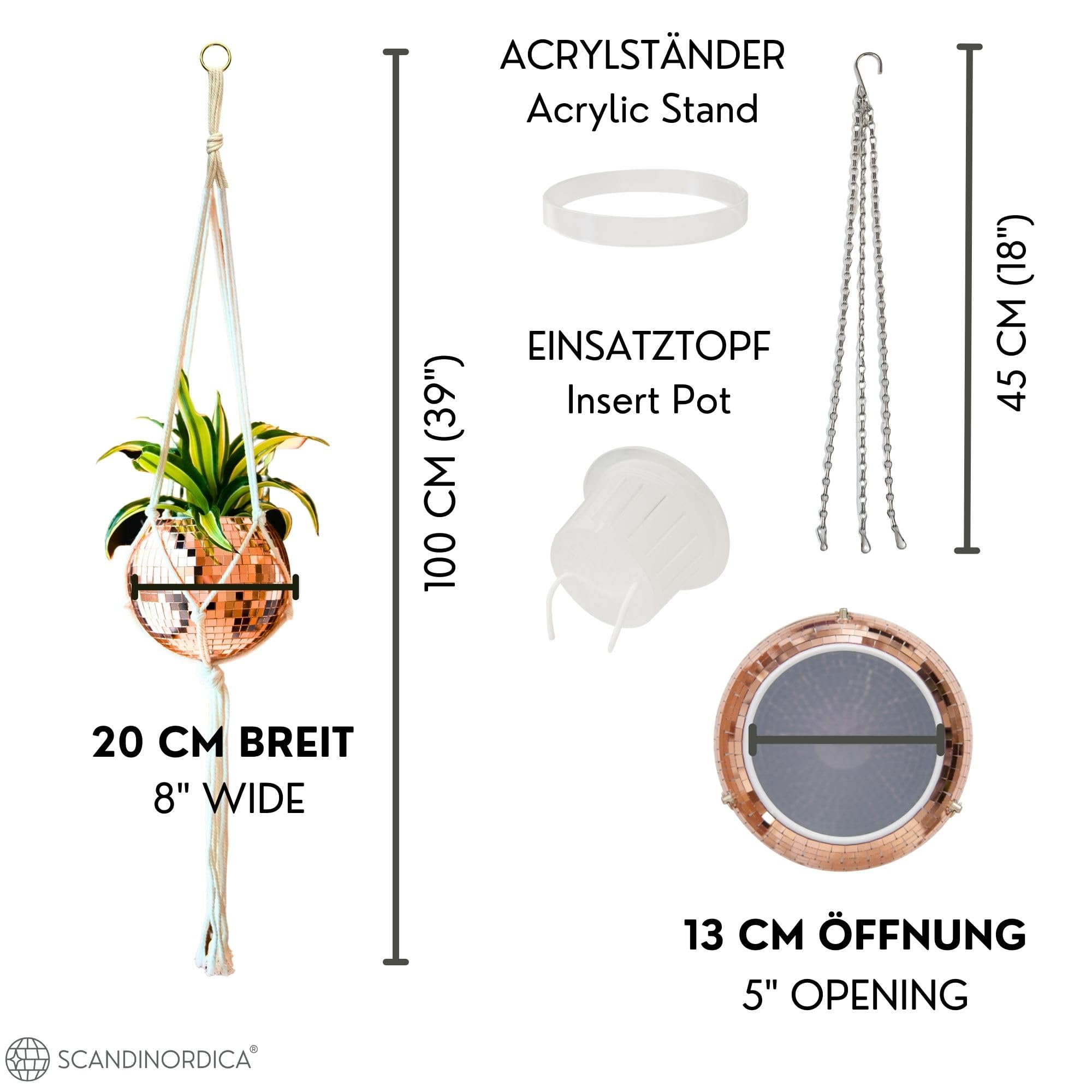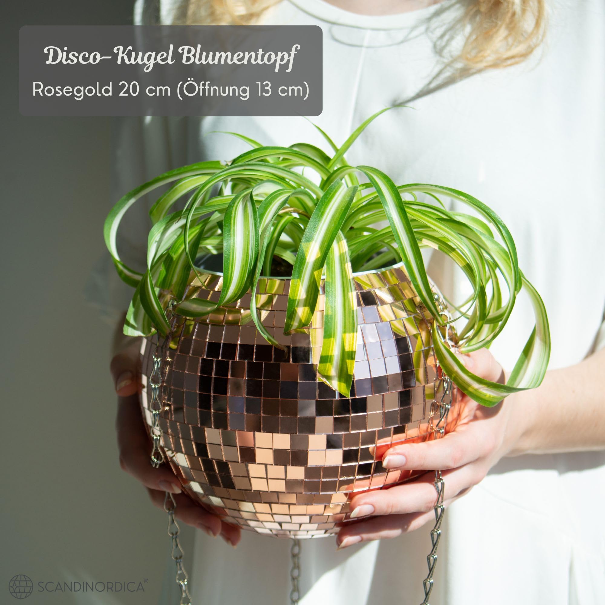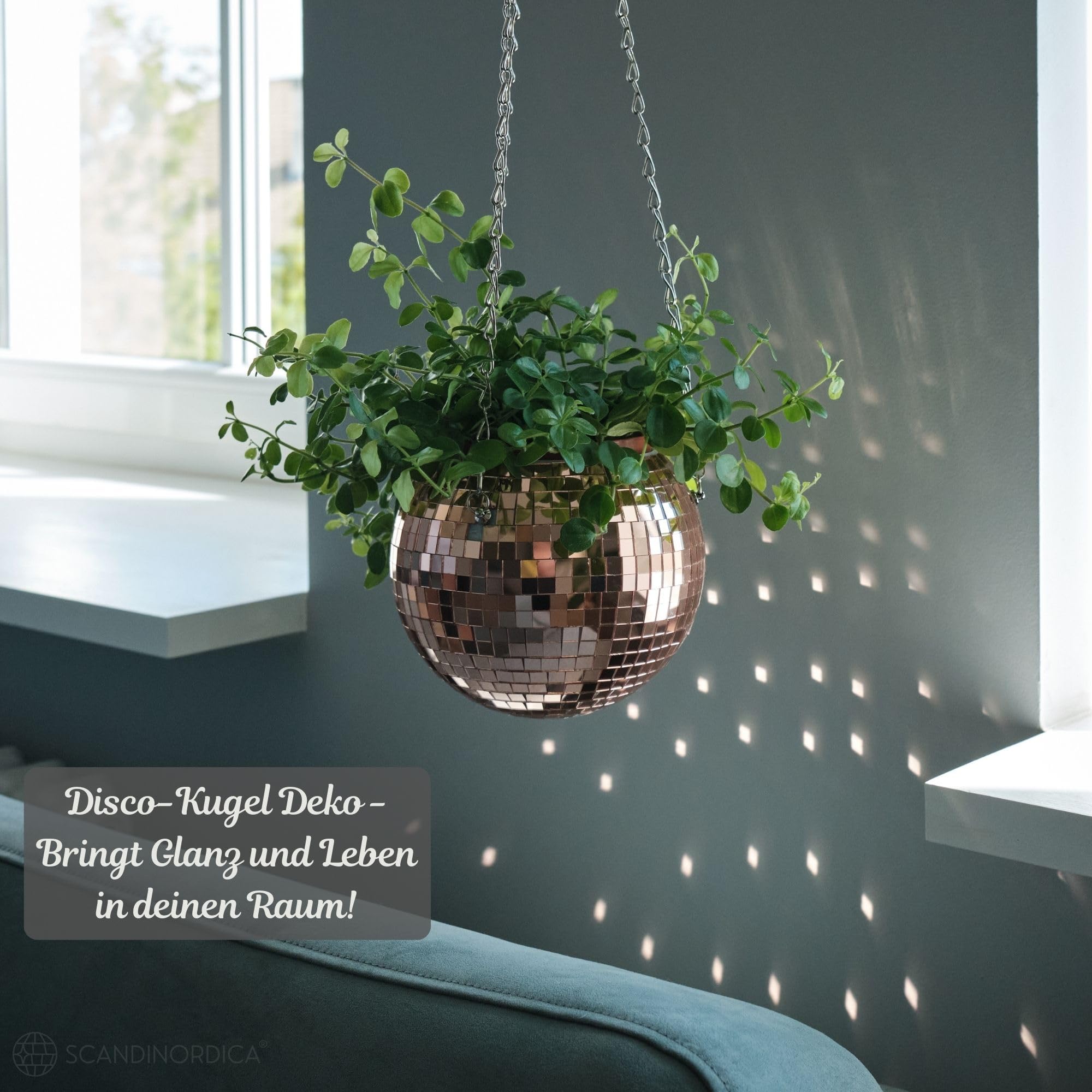 SCANDINORDICA Discokugel blumentopf - Spiegelkugel hängende blumentöpfe, diskokugel Pflanzen, discokugel deko übertopf makramee, Geschenk Freundin | Disco Kugel pflanzentopf – 20 cm Rosegold