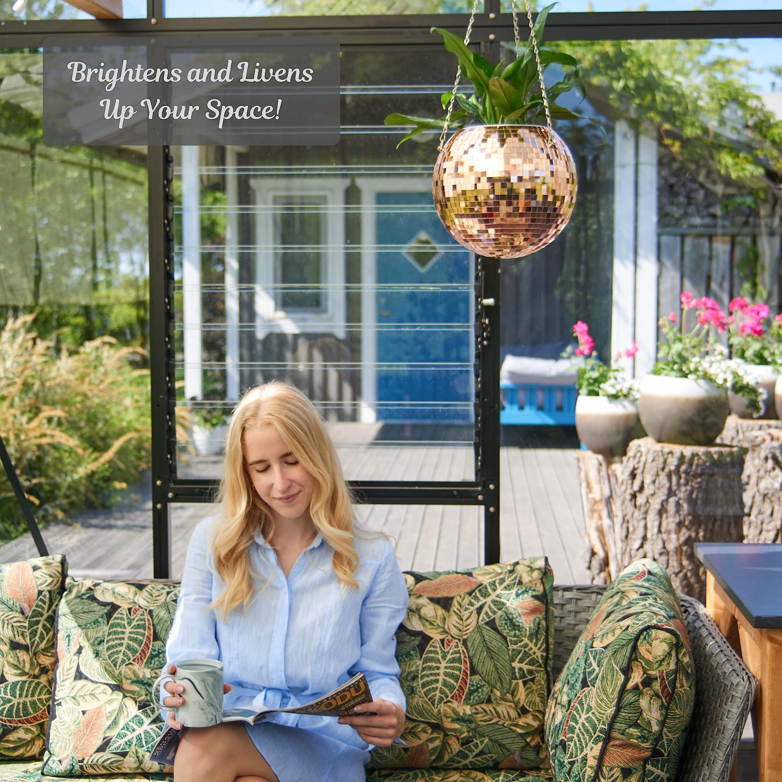 Sie werden erstaunt sein, wie viel von einem Unterschied ein wenig zusätzliches Licht in Ihr Leben bringen kann! Scandinordica Hängender Discokugel-Pflanztopf erhellt jeden Raum oder jede Veranda und fängt das Sonnenlicht ein, um dort zu scheinen, wo es am meisten benötigt wird. Diese stilvolle Boho-Discokugel erweitert die Reichweite Ihres Fensters und profitiert von anderen Zimmerpflanzen mit erhöhter natürlicher Beleuchtung und lässt Ihre Heimdekoration hervorstechen