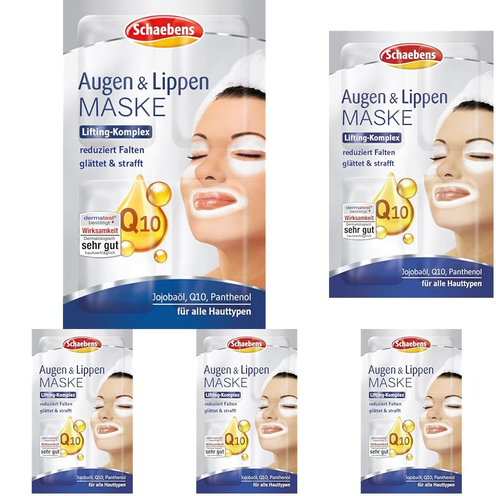 Schaebens Augen & Lippen Maske reduziert Falten, glättet und strafft mit Jojobaöl, Q10 und Panthenol für alle Hauttypen (Packung mit 5)