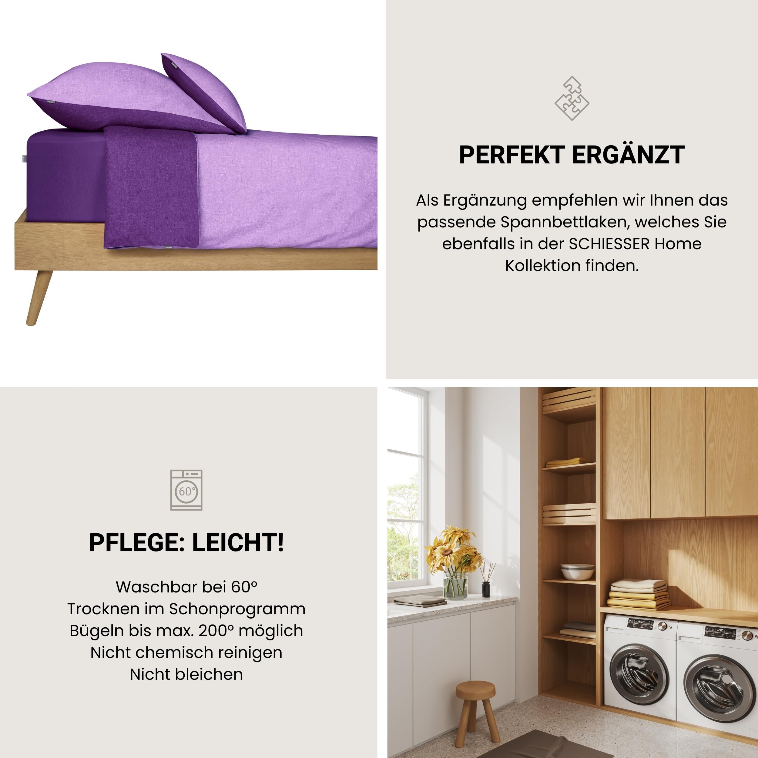 Schiesser Bettwäscheset Doubleface | Renforcé | 2-teilig | Zweifarbig | 100 % Baumwolle | Oeko-Tex® Made in Green Zertifiziert | Reissverschluss | 155x220cm + 80x80cm | Lila