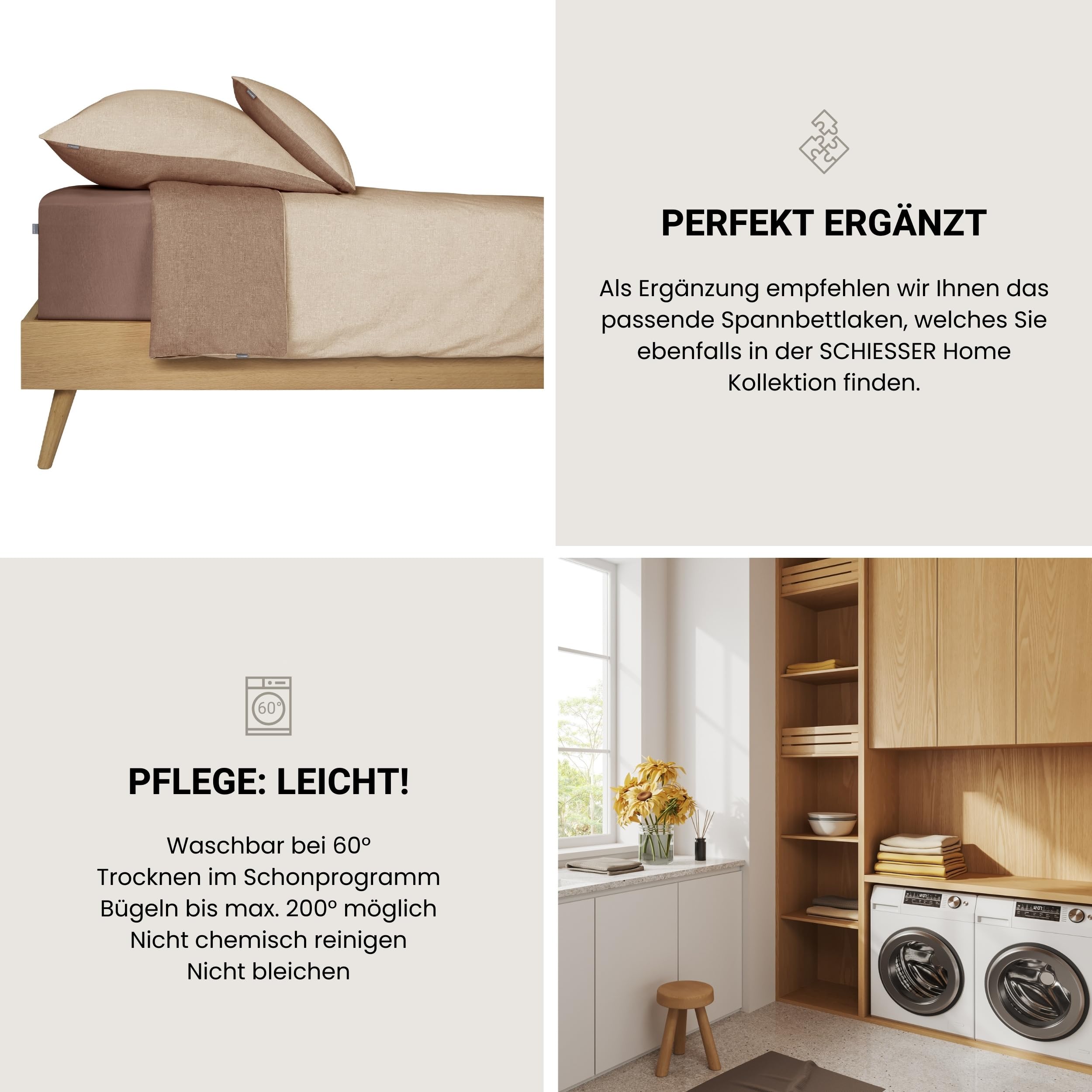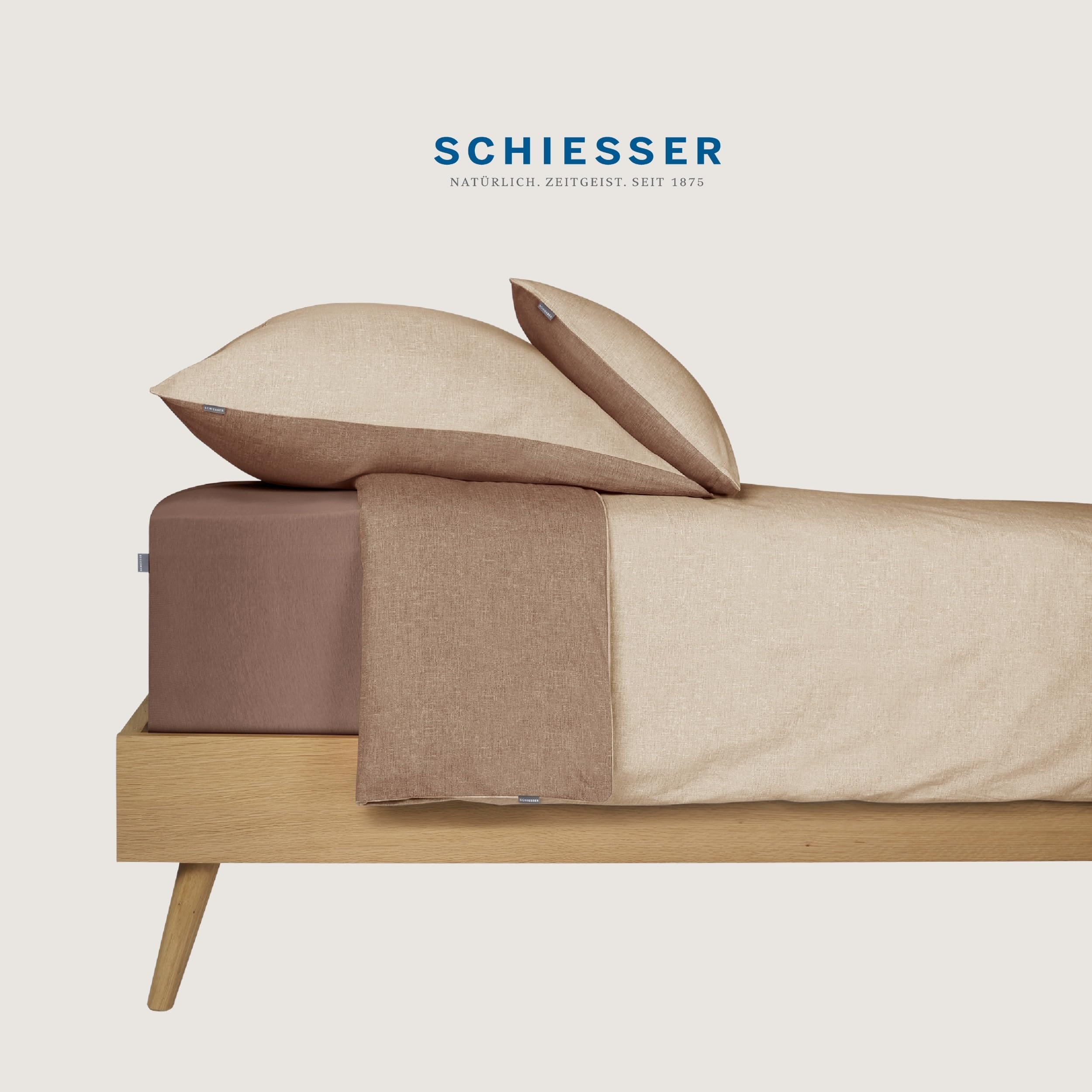 Schiesser Bettwäscheset Doubleface | Renforcé | 2-teilig | Zweifarbig | 100 % Baumwolle | Oeko-Tex® Made in Green Zertifiziert | Reissverschluss | 155x220cm + 80x80cm | Sand