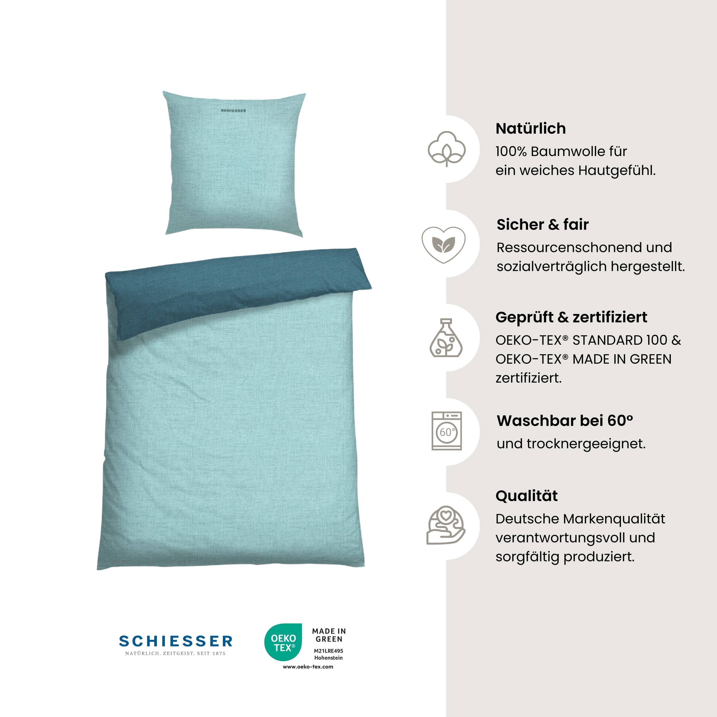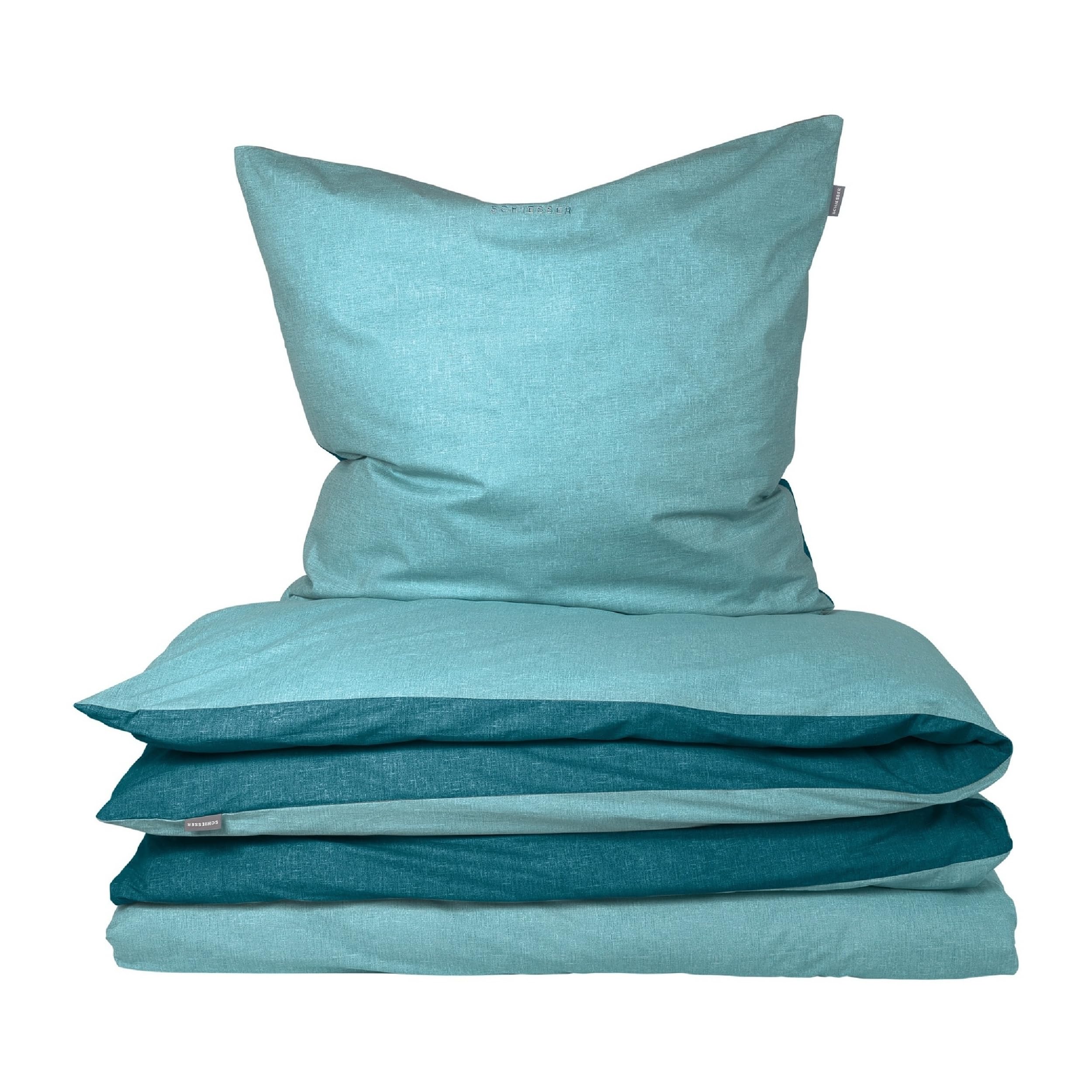 Schiesser Bettwäscheset Doubleface | Renforcé | 2-teilig | Zweifarbig | 100 % Baumwolle | Oeko-Tex® Made in Green Zertifiziert | Reissverschluss | 135x200cm + 80x80cm | Türkis