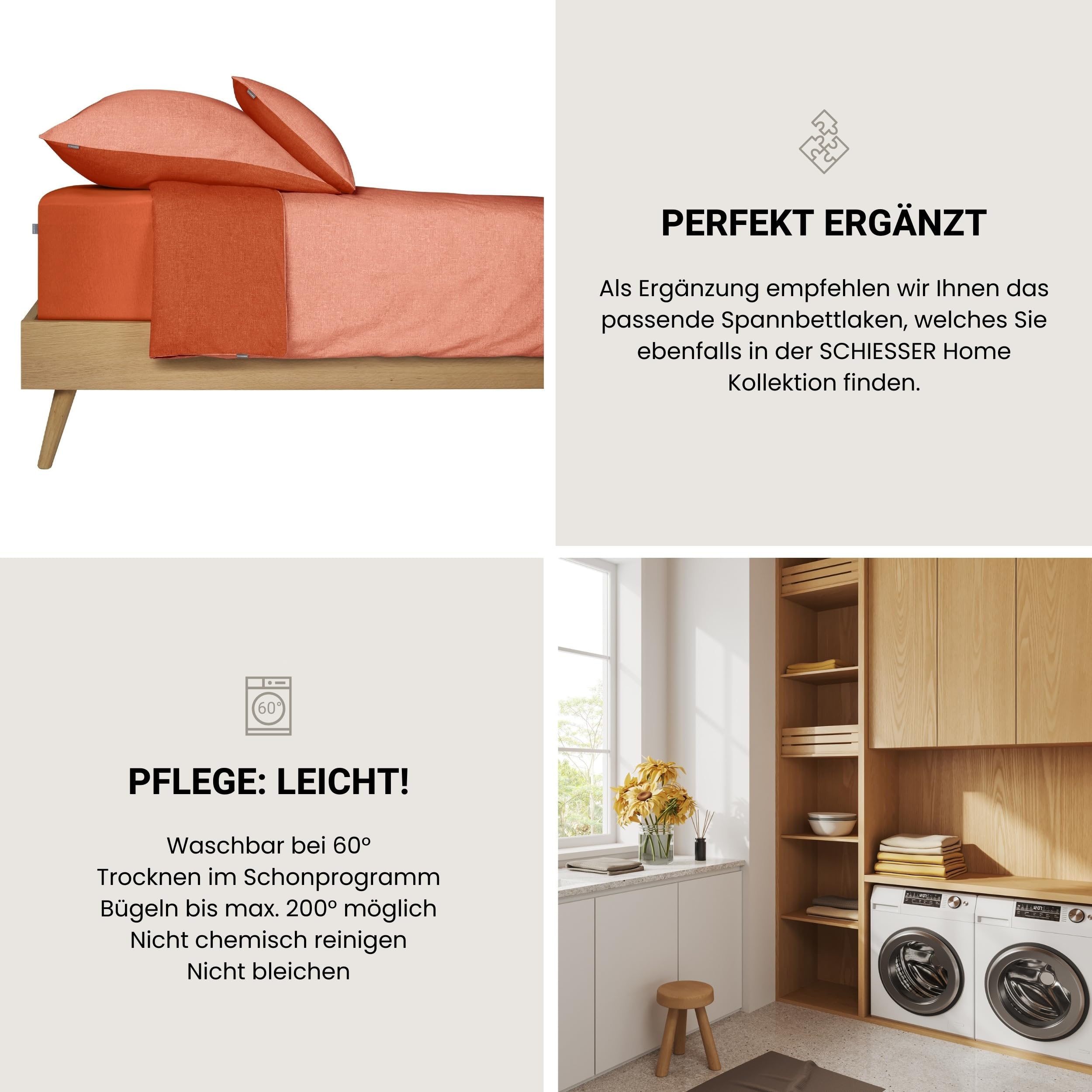 Schiesser Bettwäscheset Doubleface | Renforcé | 2-teilig | Zweifarbig | 100 % Baumwolle | Oeko-Tex® Made in Green Zertifiziert | Reissverschluss | 155x220cm + 80x80cm | Terrakotta