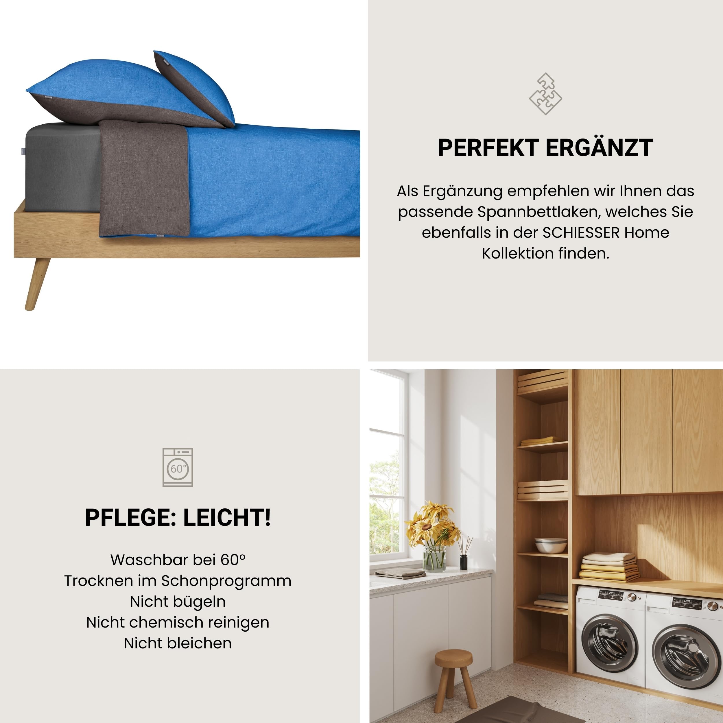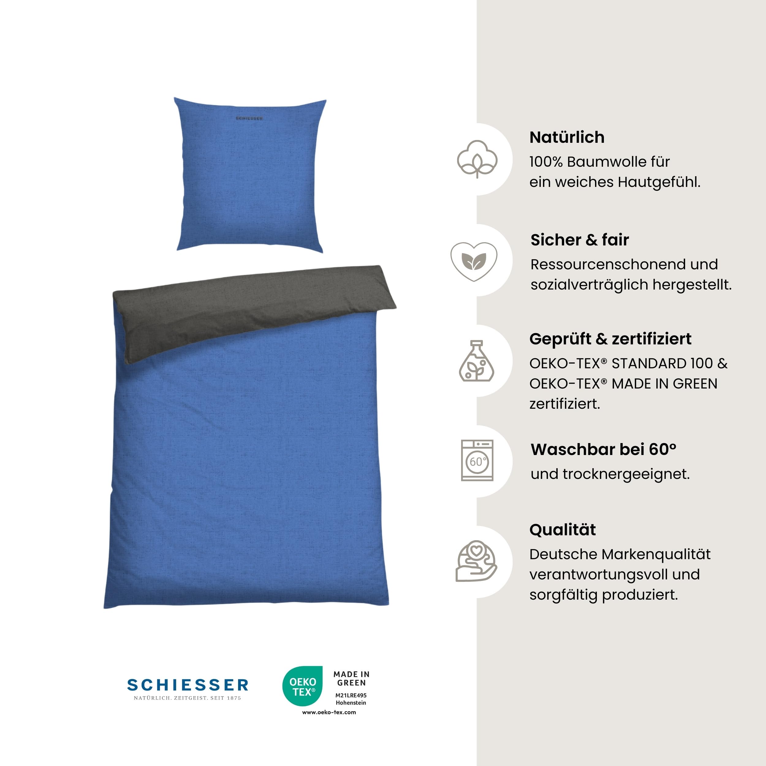 Schiesser Bettwäscheset Doubleface | Renforcé | 2-teilig | Zweifarbig | 100 % Baumwolle | Oeko-Tex® Made in Green Zertifiziert | Reissverschluss | 135x200cm + 80x80cm | Blau-Dunkelgrau